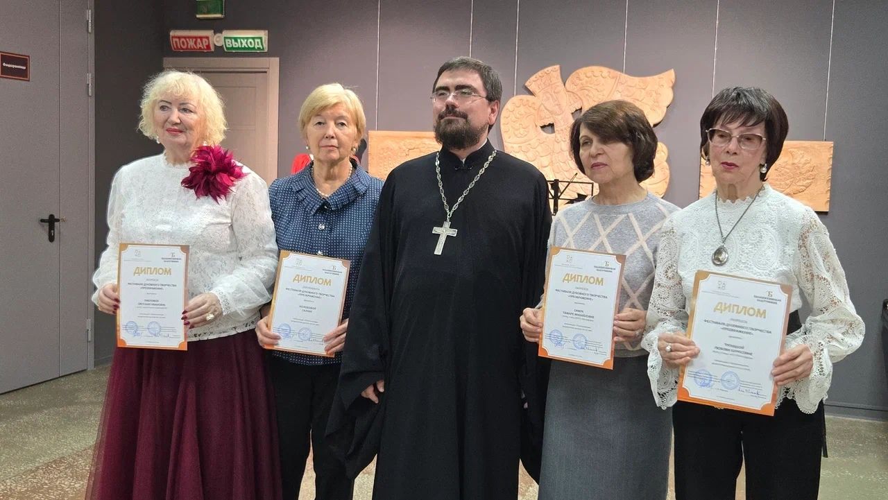 Предваряя торжественную часть, отец благочинный обратился к участникам фестиваля с пастырским словом и вручил архиерейские награды организаторам литературно-музыкальной постановки «Хранитель Церкви Русской», посвящённой жизни и служению святителя Тихона, патриарха Московского и всея Руси, которая прошла в доме культуры «Кучино» города Балашихи в октябре уходящего года.