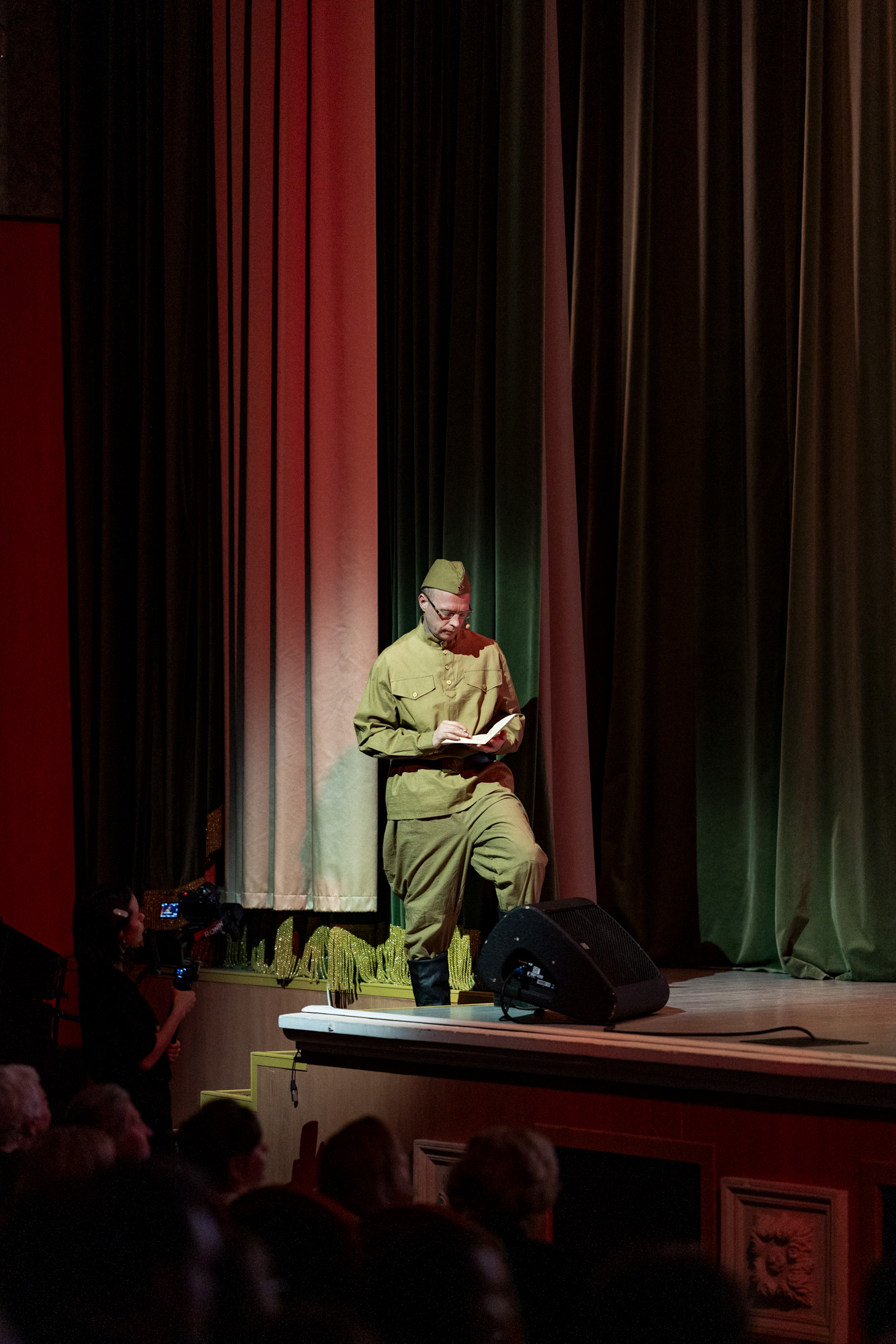 Для зрителей была подготовлена театрализованная постановка, рассказывающая о событиях Великой Отечественной войны. Также в течение вечера для слушателей с музыкальными и хореографическими номерами выступили творческие коллективы округа.