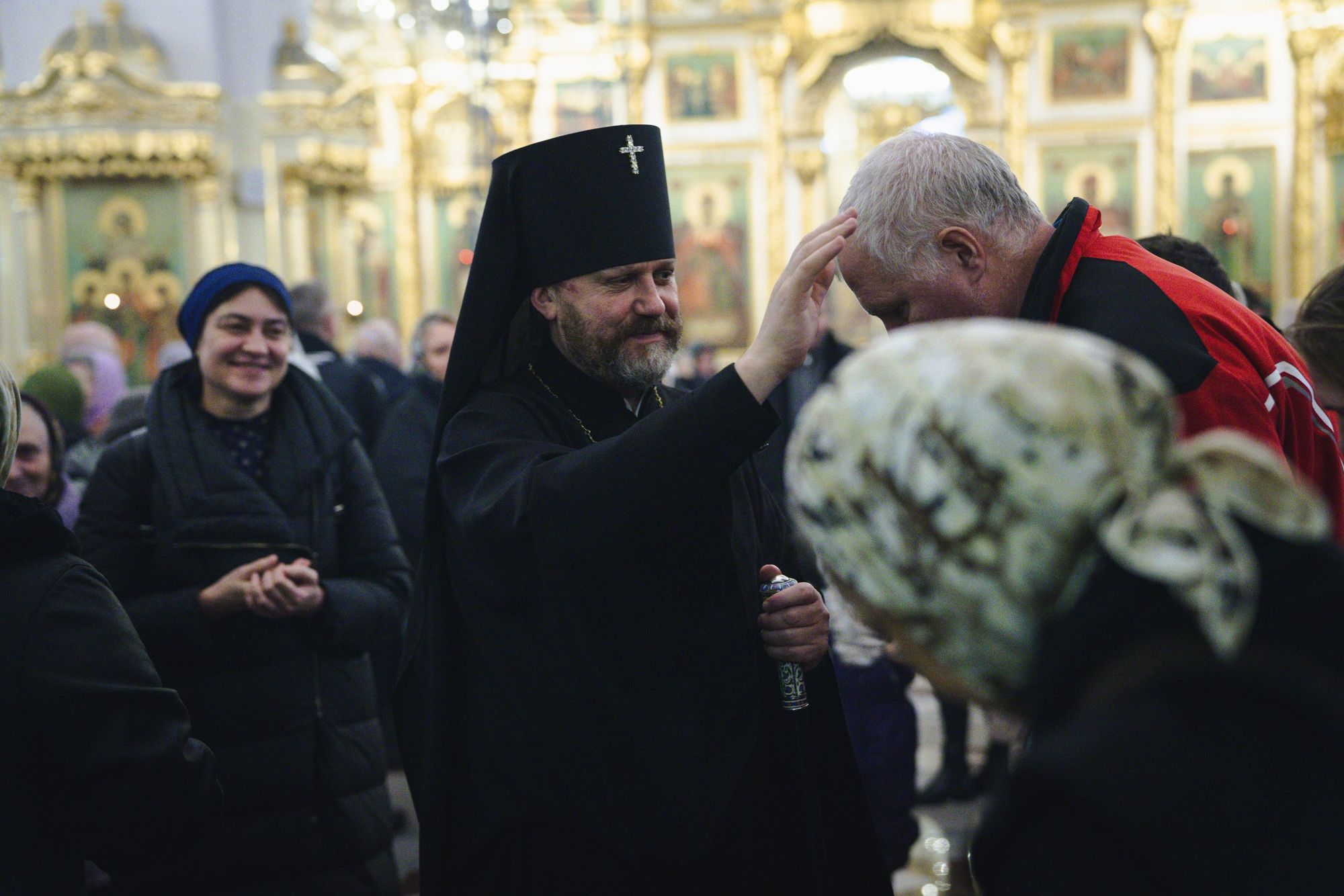 В конце богослужения было совершено славление празднуемым святым. После владыка Фома обратился со словами проповеди.