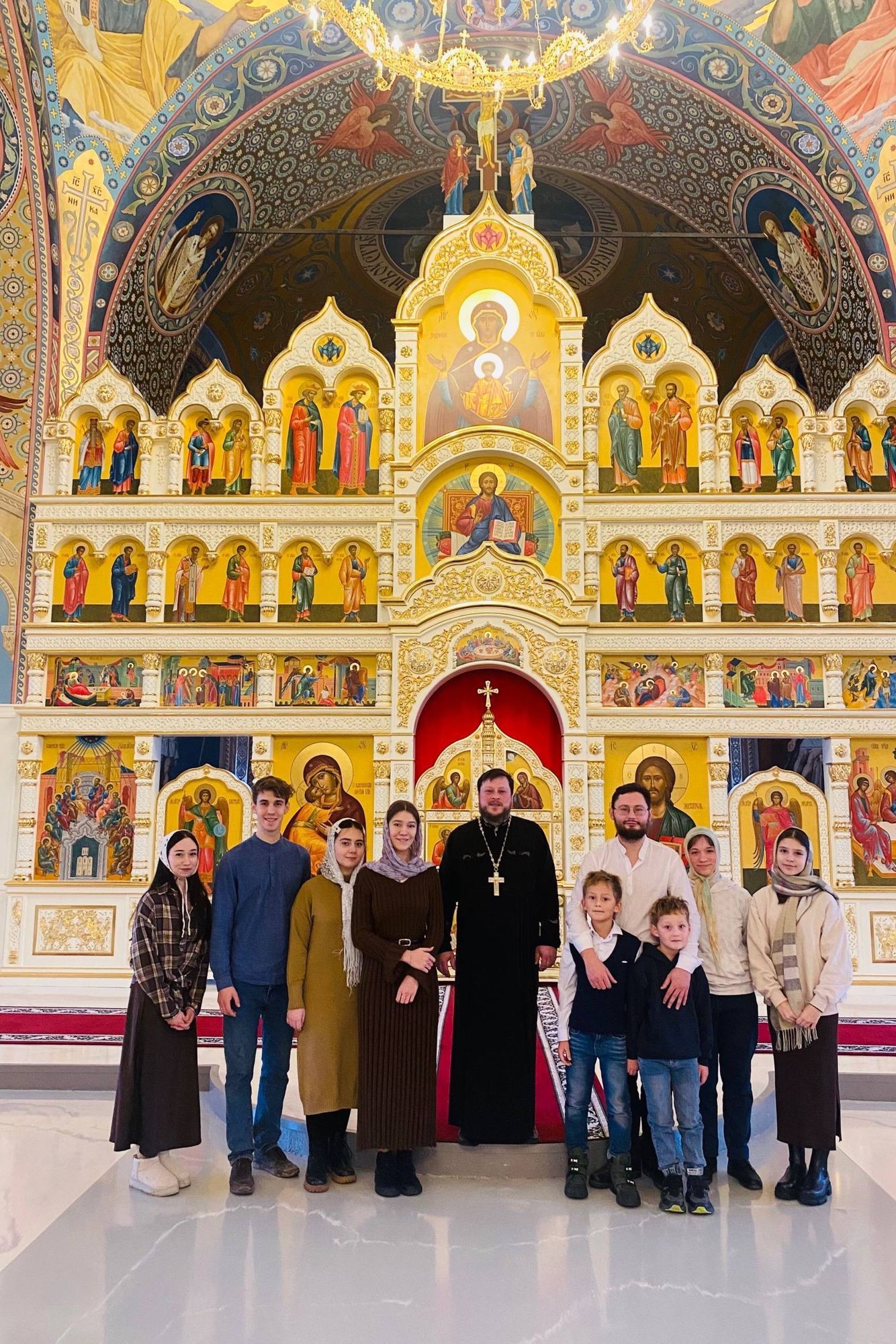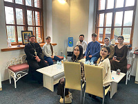 Настоятель храма иерей Александр Леонтьев радушно встретил ребят провёл экскурсию по территории и рассказал об истории и росписях храма, ответил на вопросы в ходе общения во время совместного чаепития.