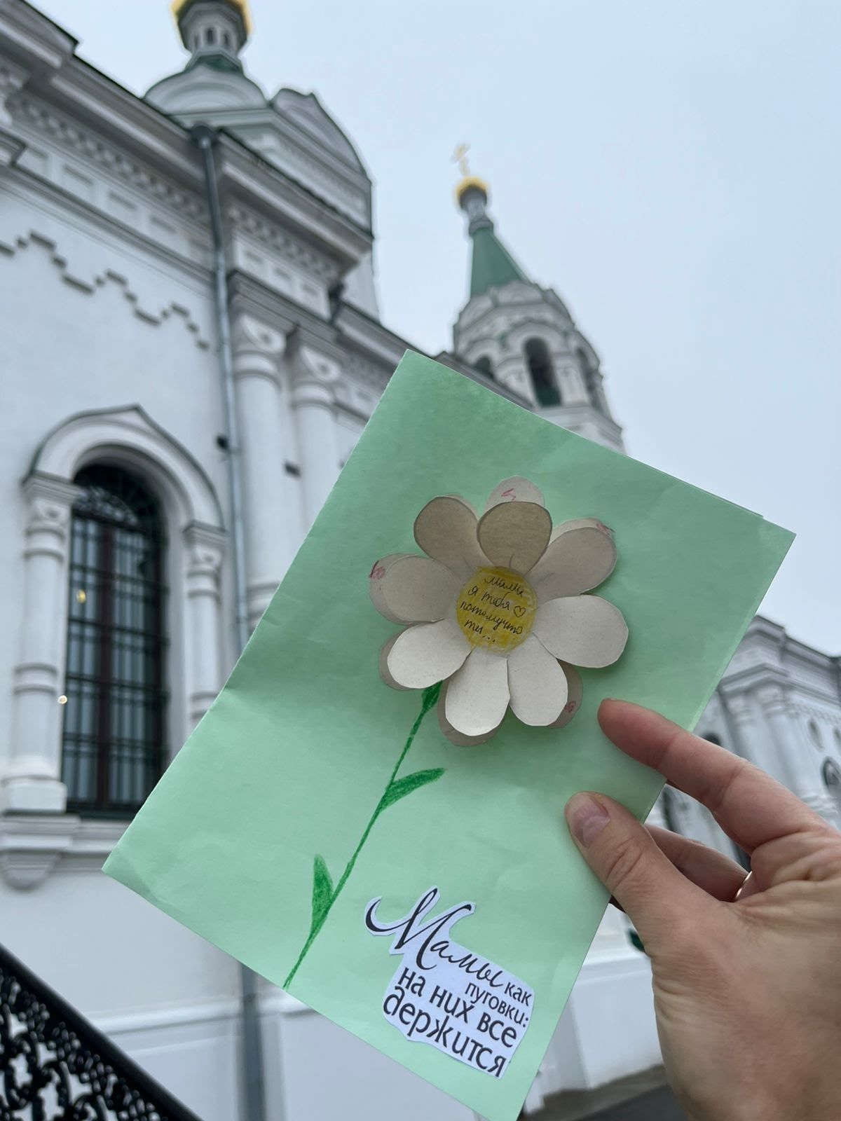 Воспитанники воскресной школы «Лествица» преподнесли мамам свои творческие работы.