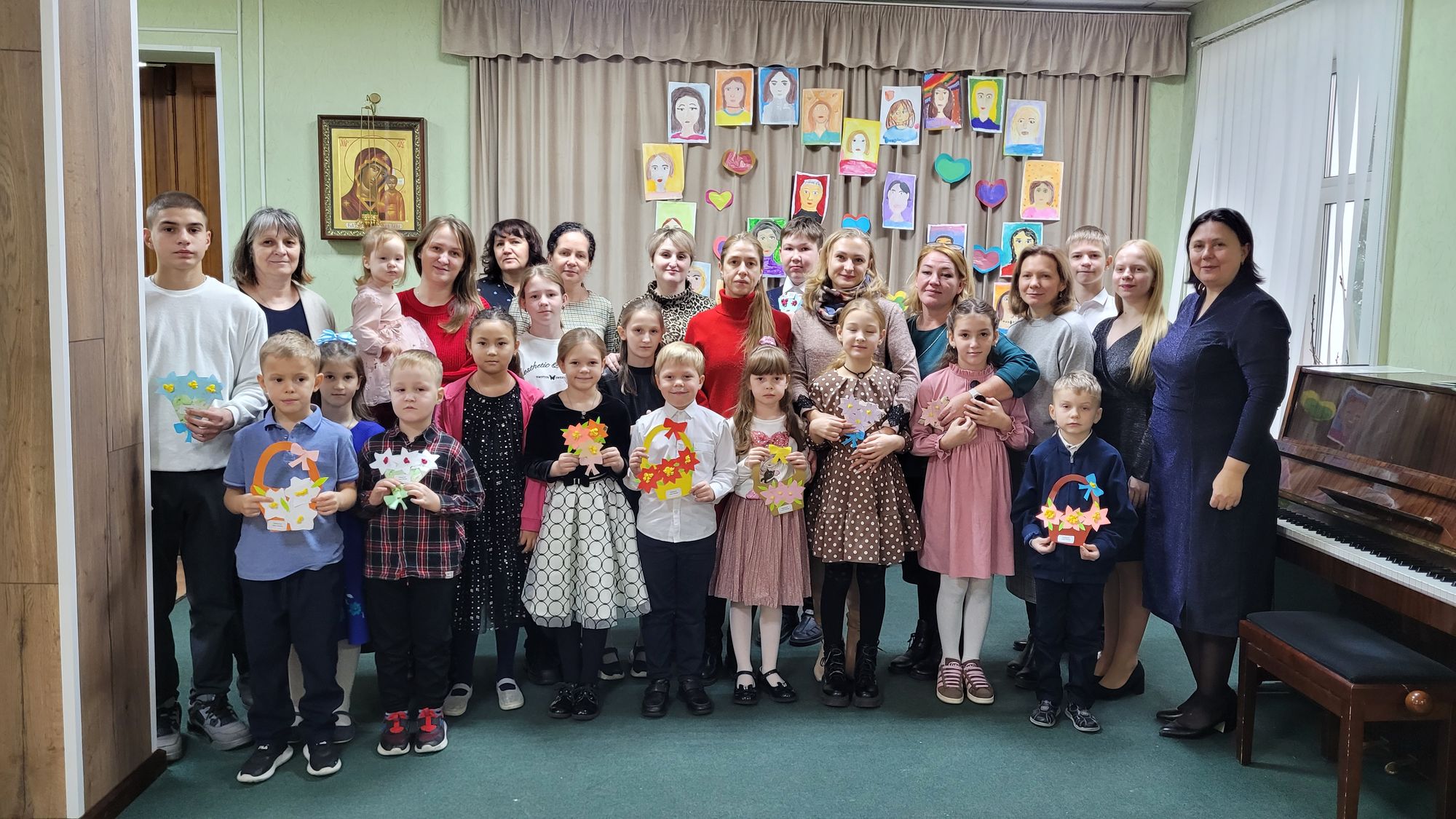 30 ноября воспитанники воскресной школы при Троицком соборе поздравили своих мам и вручили им изготовленные своими руками праздничные открытки.