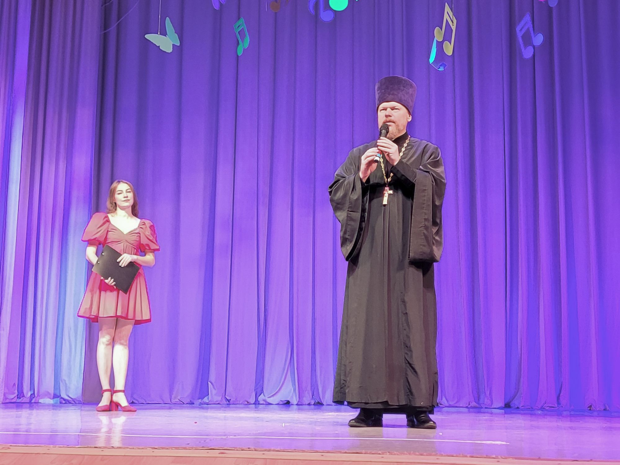 30 ноября в доме культуры имени В. П. Чкалова собравшихся поздравил клирик храма страстотерпца царя Николая священник Сергий Агапов.