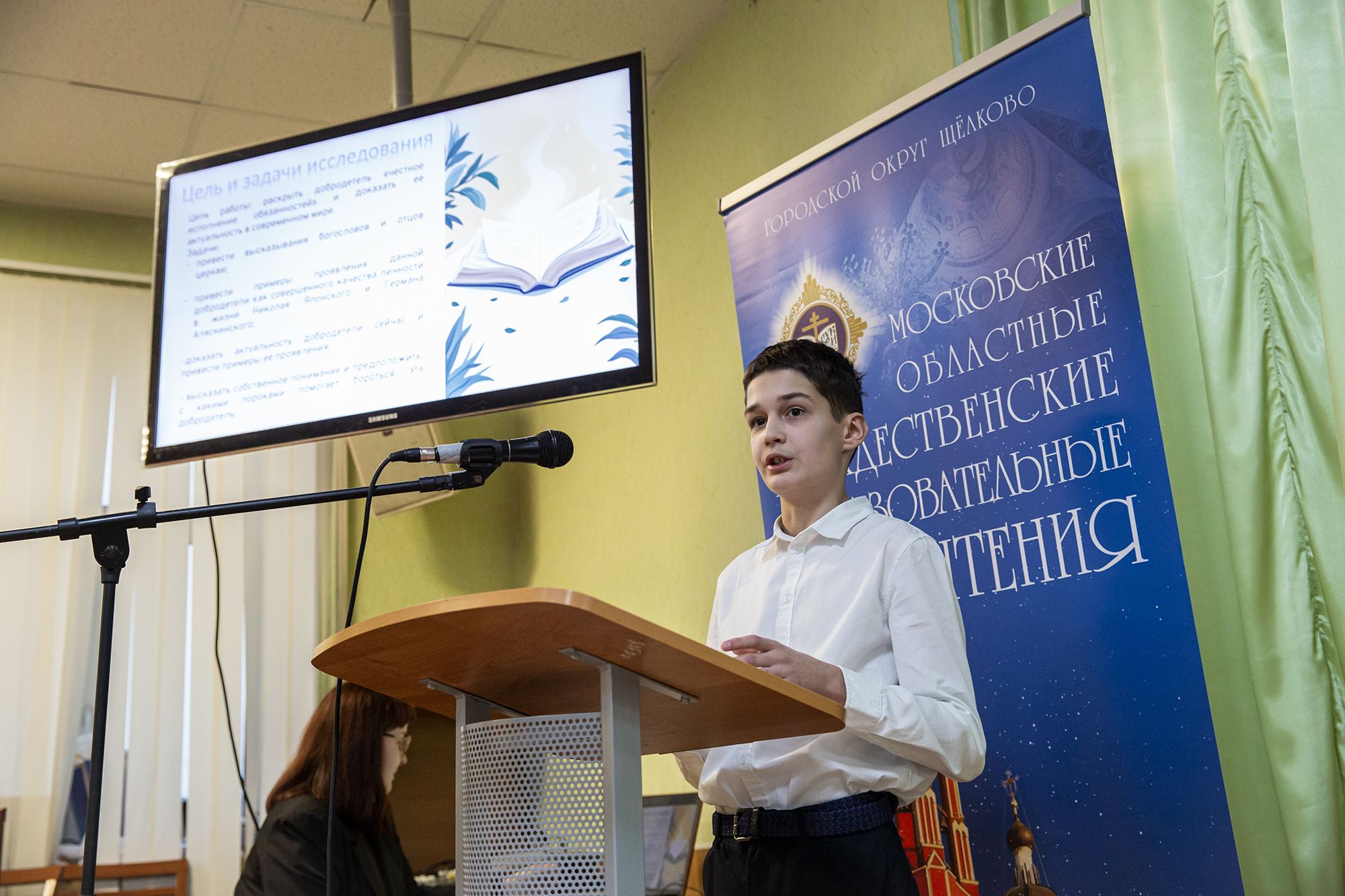 Учащиеся школ городского округа Щёлково 6-11 классов представили тематические доклады. Ребята рассказали о христианских добродетелях, как основе формирования личности и правильных жизненных ориентиров.