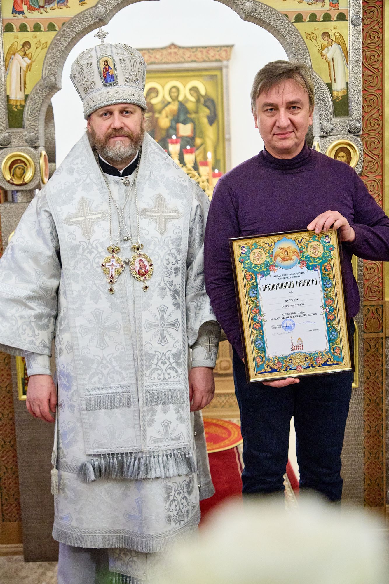 Многие благотворители, жители округа и прихожане, участвовавшие в строительстве нового храма, молились за богослужением.