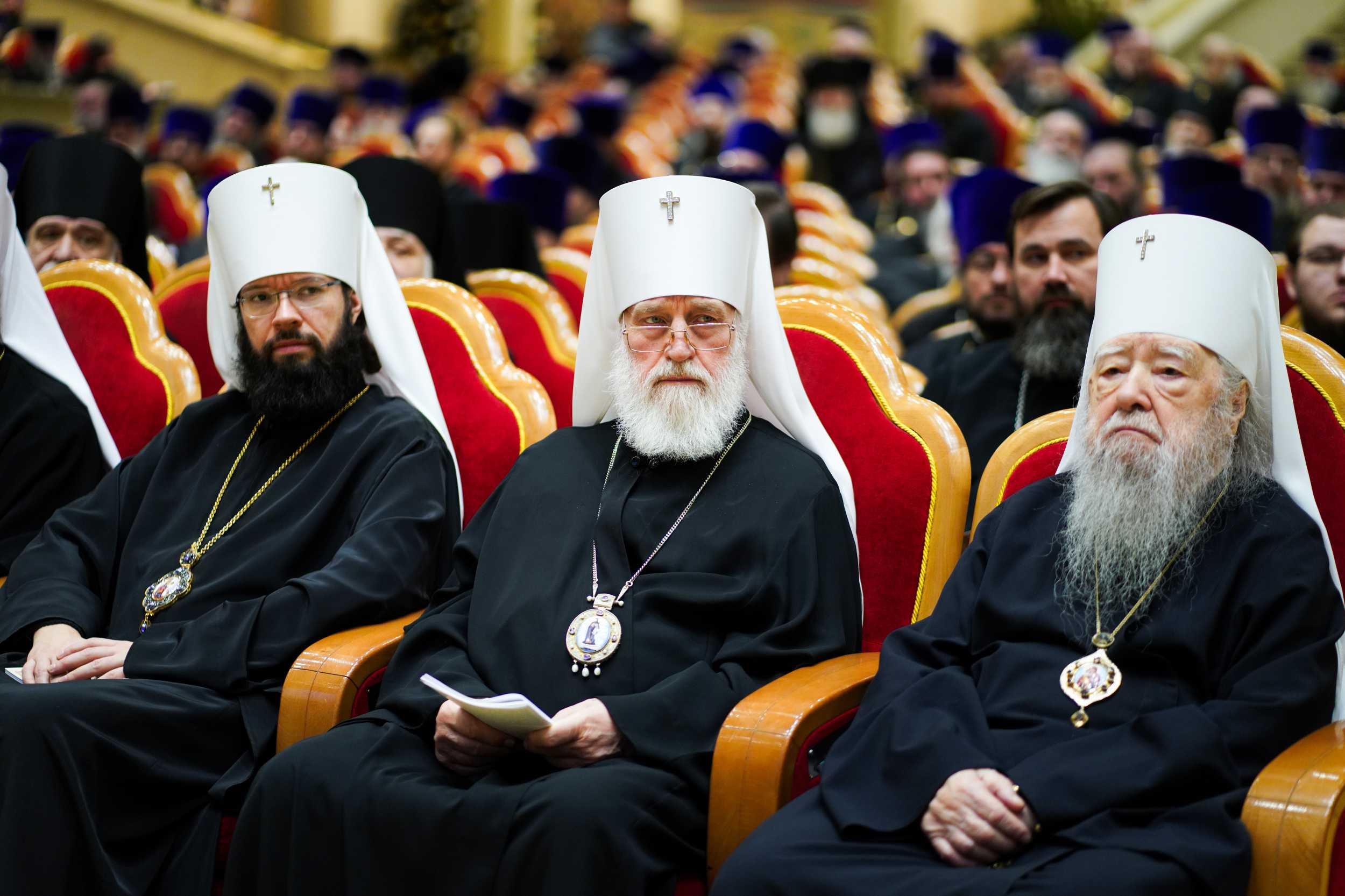 По предложению Его Святейшества было возглашено многолетие Блаженнейшему митрополиту Киевскому и всея Украины Онуфрию, пребывающему в заключении митрополиту Святогорскому Арсению, иным архипастырям, а также пастырям, монашествующим и мирянам Украинской Православной Церкви, претерпевающим гонения за веру.