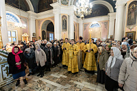 В завершение отец благочинный поблагодарил Владыку за совершённое богослужение и преподнёс памятные подарки.