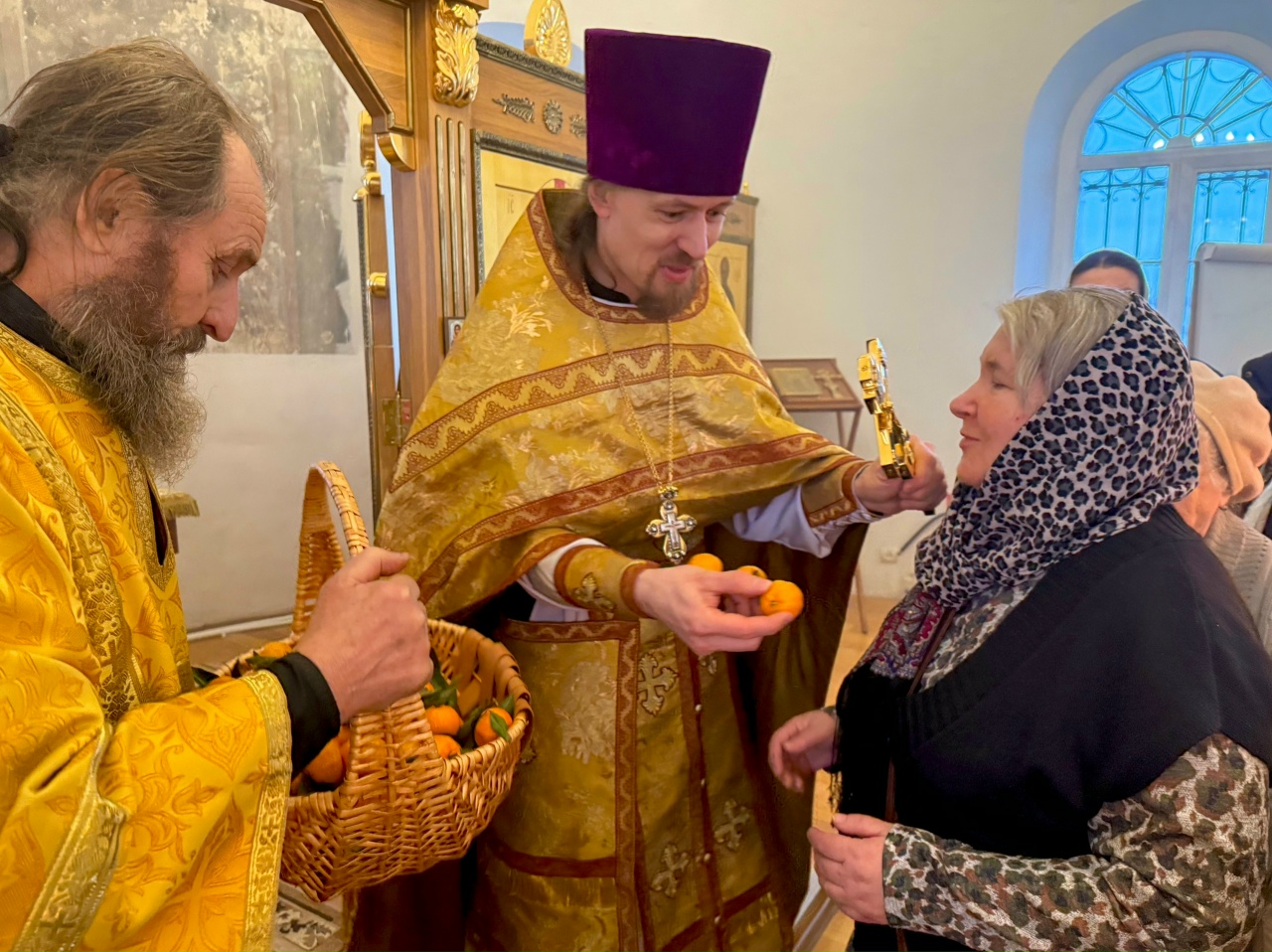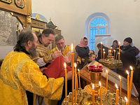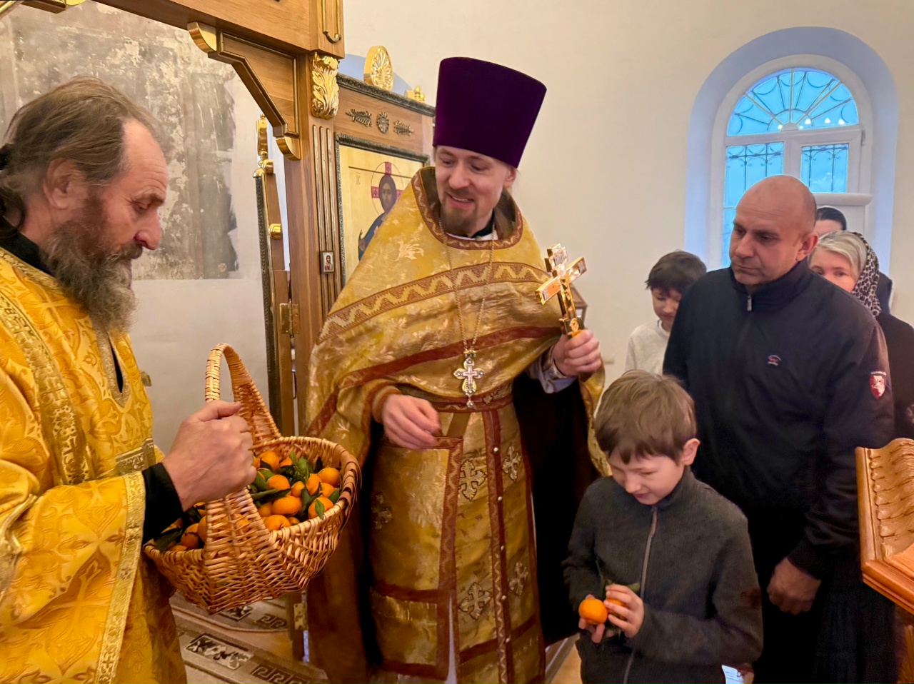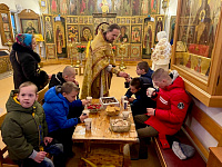 19 декабря 2025 года, в день памяти святителя Николая, архиепископа Мир Ликийских, чудотворца, в Крестовоздвиженском храме г. Коломна отметили престольный праздник придела. За Божественной литургией вместе с прихожанами молились дети-инвалиды, проживающие в детском доме-интернате «Добрый дом «Коломенский». По окончании Богослужения настоятель иерей Иоанн Бакушкин вручил прихожанам и гостям подарки.