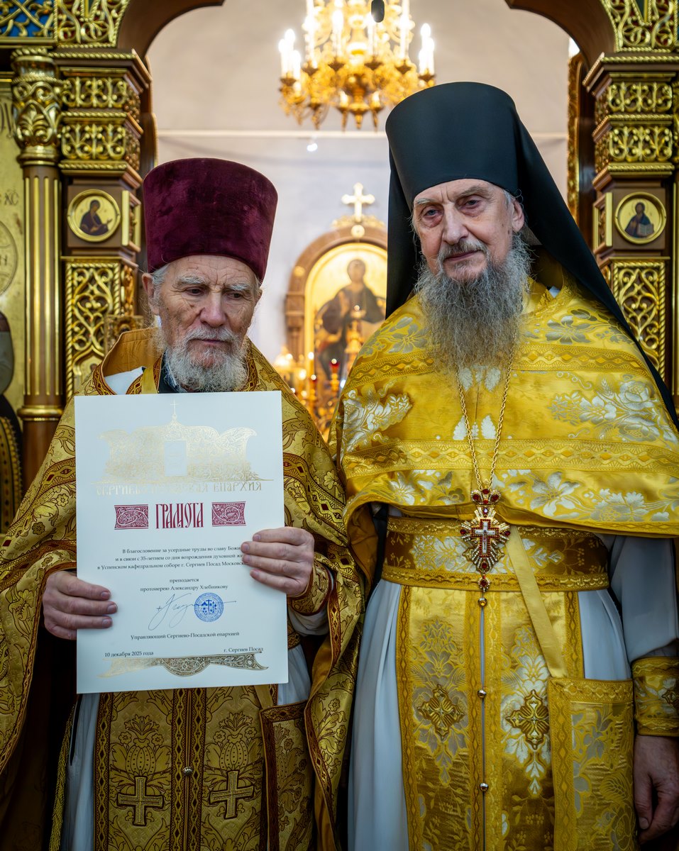 18 и 19 декабря 2025 года, в день памяти святителя Николая, архиепископа Мир Ликийских, чудотворца, в Успенском кафедральном соборе в Сергиевом Посаде были совершены праздничные богослужения по случаю престольного праздника и 35-летия совершения первой Литургии.