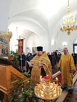По окончании Божественной литургии настоятель протоирей Михаил Власов поздравил прихожан.