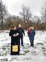 На месте, где ранее находилась святыня, настоятель Владимирского храма поселка Индустрия иерей Илия Царьков совершил молебен.