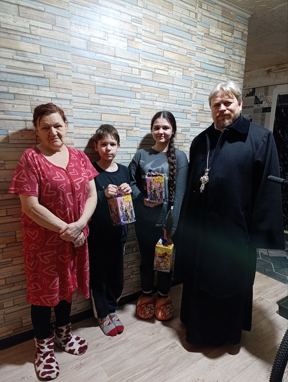 24 декабря благочинный 1-го Егорьевского благочиннического округа протоиерей Сергий Кожевников и специалисты участковой Социальной службы ГКУ СО МО «Преображение» посетили малоимущие и многодетные семьи. Отец Сергий поздравил детей и родителей с наступающим Рождеством Христовым и передал сладкие подарки.