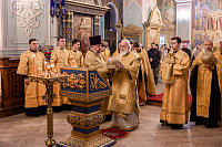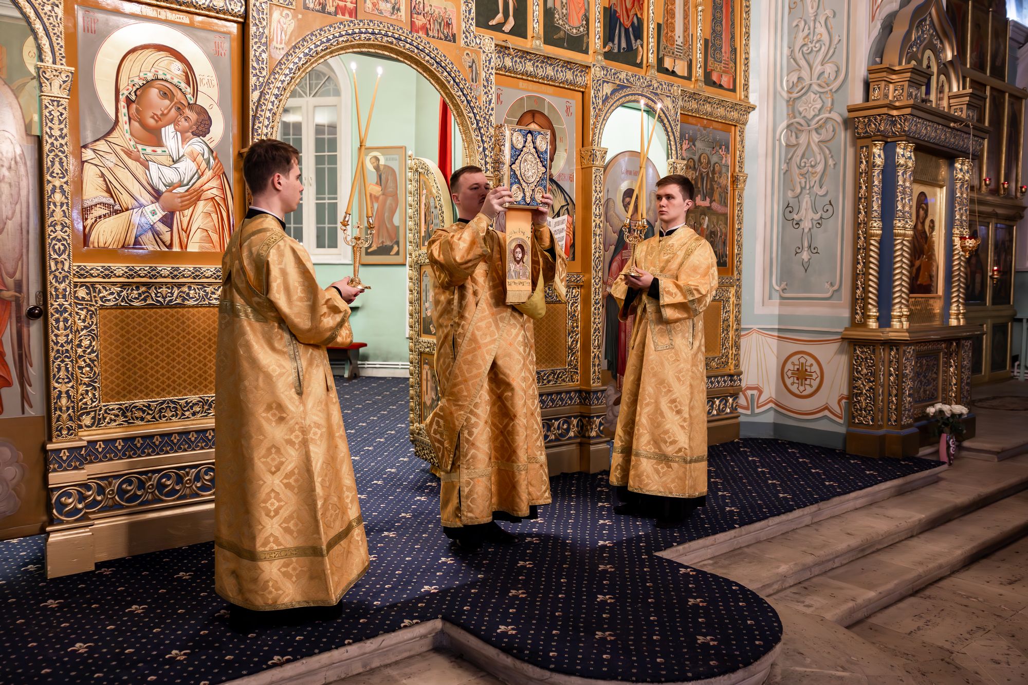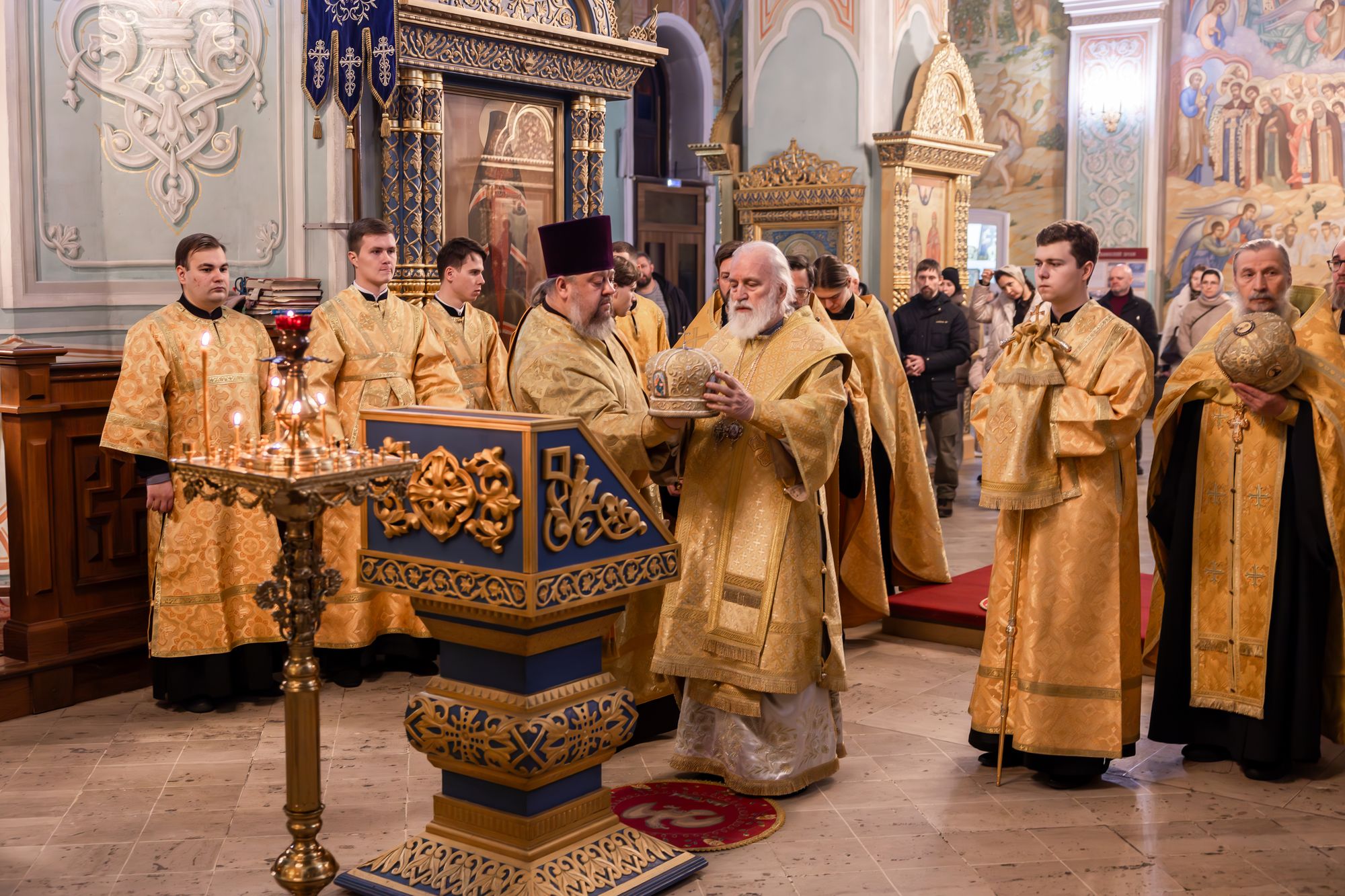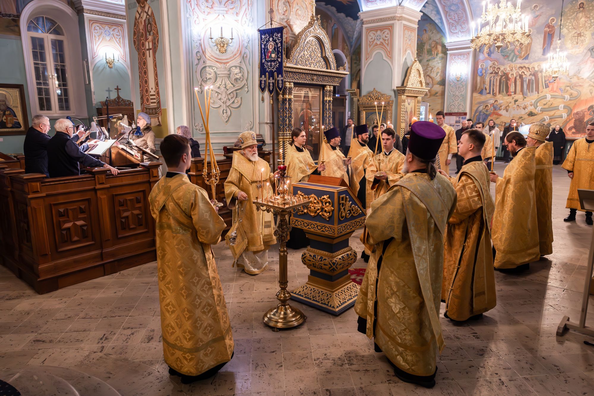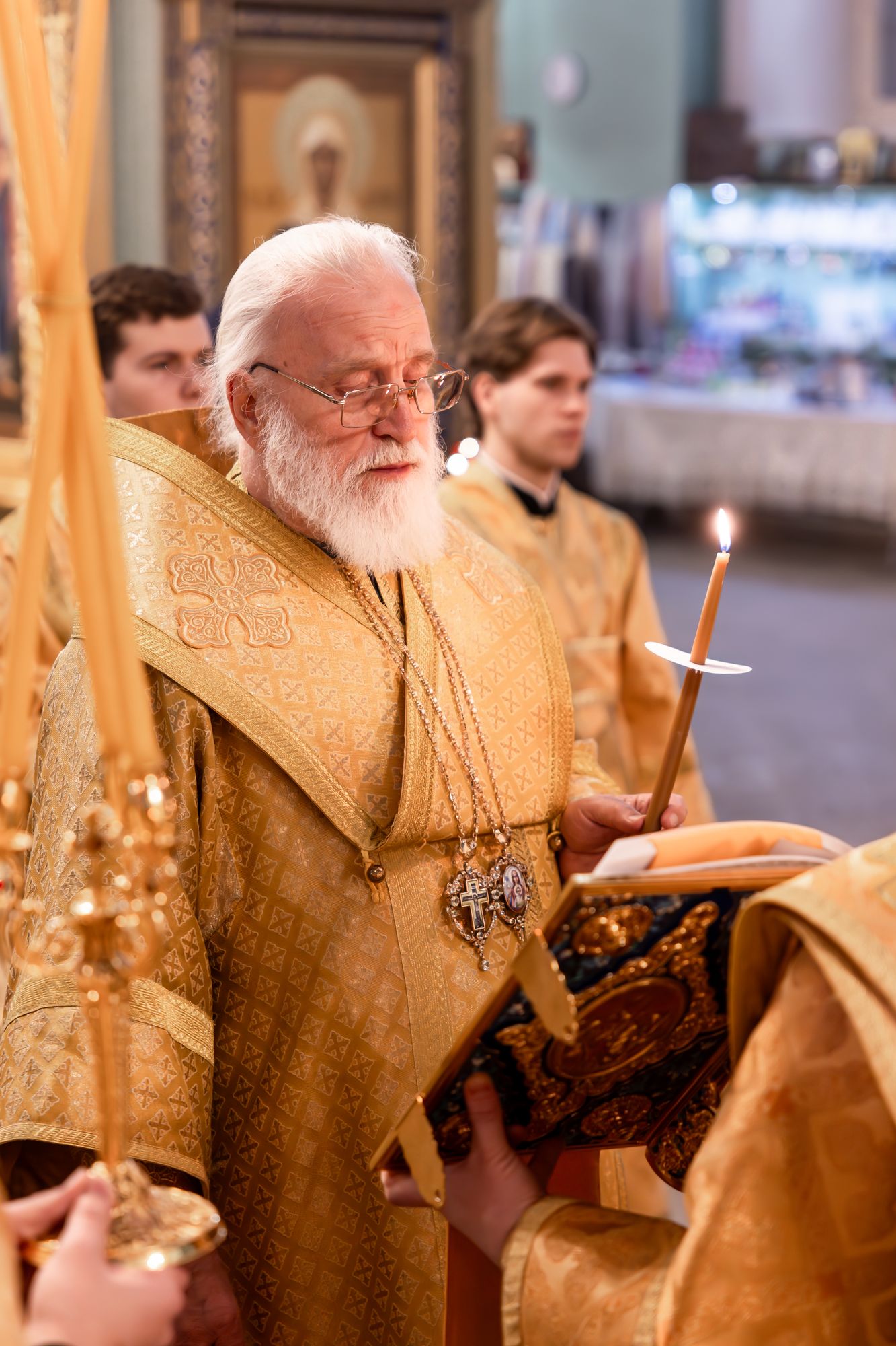 Богослужебные песнопения исполнил соборный хор под управлением Наталии Камышниковой.