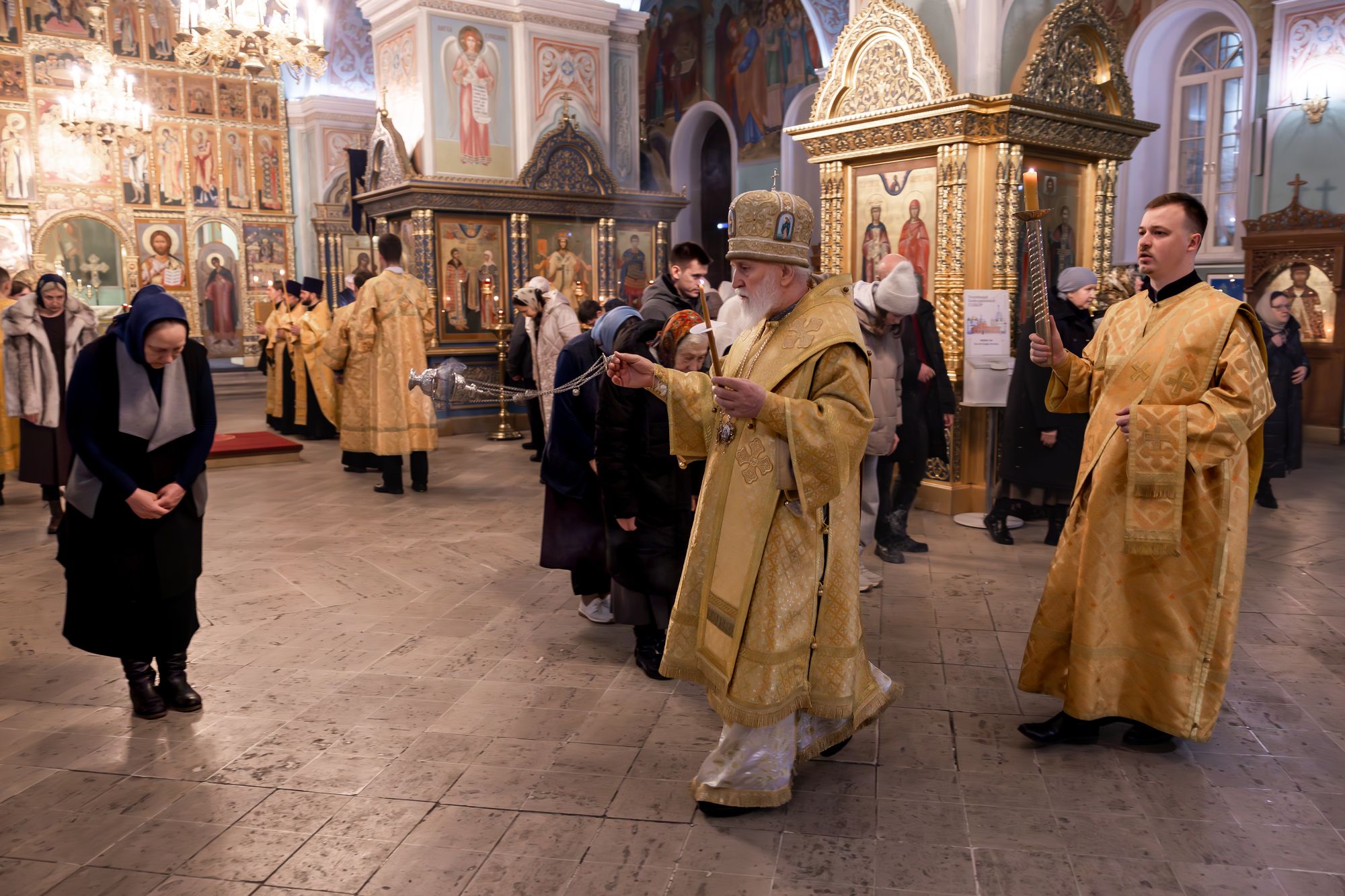 27 декабря 2025 года, накануне Недели 29-й по Пятидесятнице, святых праотец, митрополит Крутицкий и Коломенский Павел возглавил всенощное бдение в Тихвинском храме города Коломны.