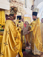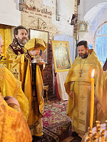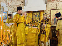 За Божественной литургией Его Высокопреосвященству сослужили: