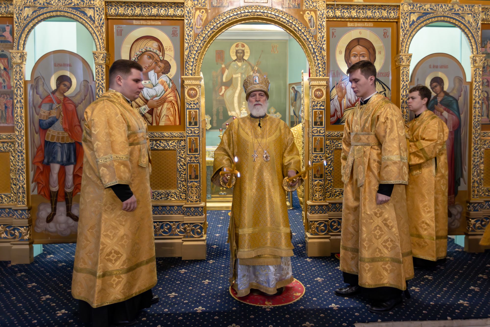 Богослужебные песнопения исполнил соборный хор под управлением Наталии Камышниковой.