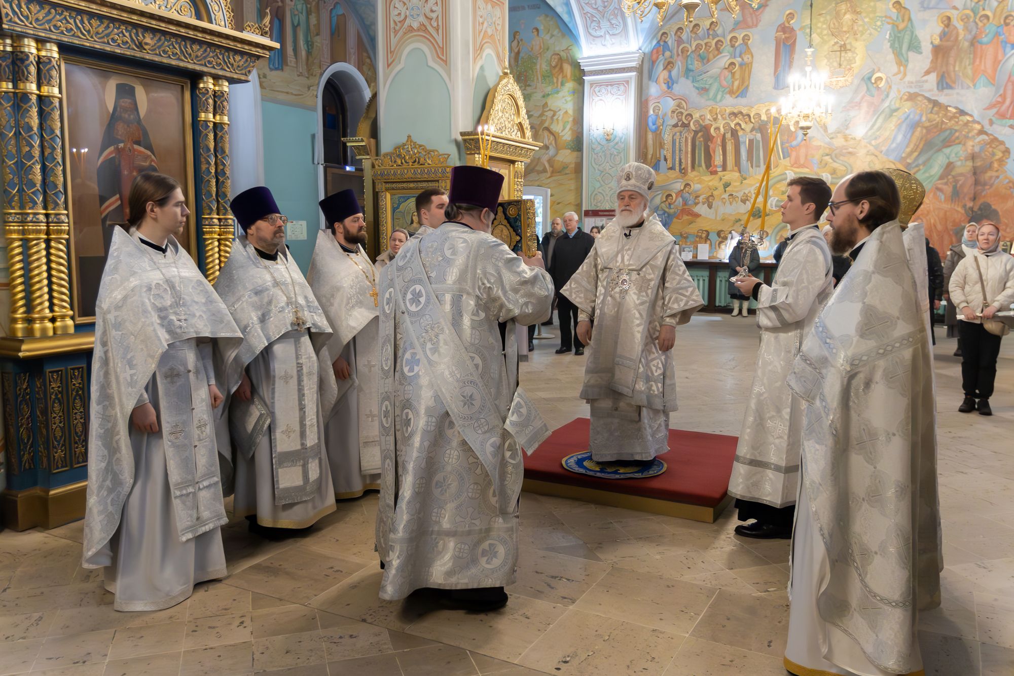 Богослужебные песнопения исполнил соборный хор под управлением Наталии Камышниковой.
