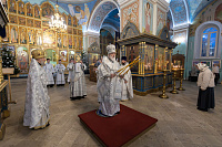 Его Высокопреосвященству сослужили: секретарь Коломенского епархиального управления иерей Андрей Згонников и клирики собора.