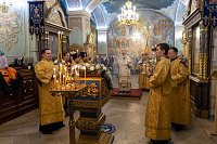 Его Высокопреосвященству сослужили: секретарь Коломенского епархиального управления иерей Андрей Згонников и клирики храма.