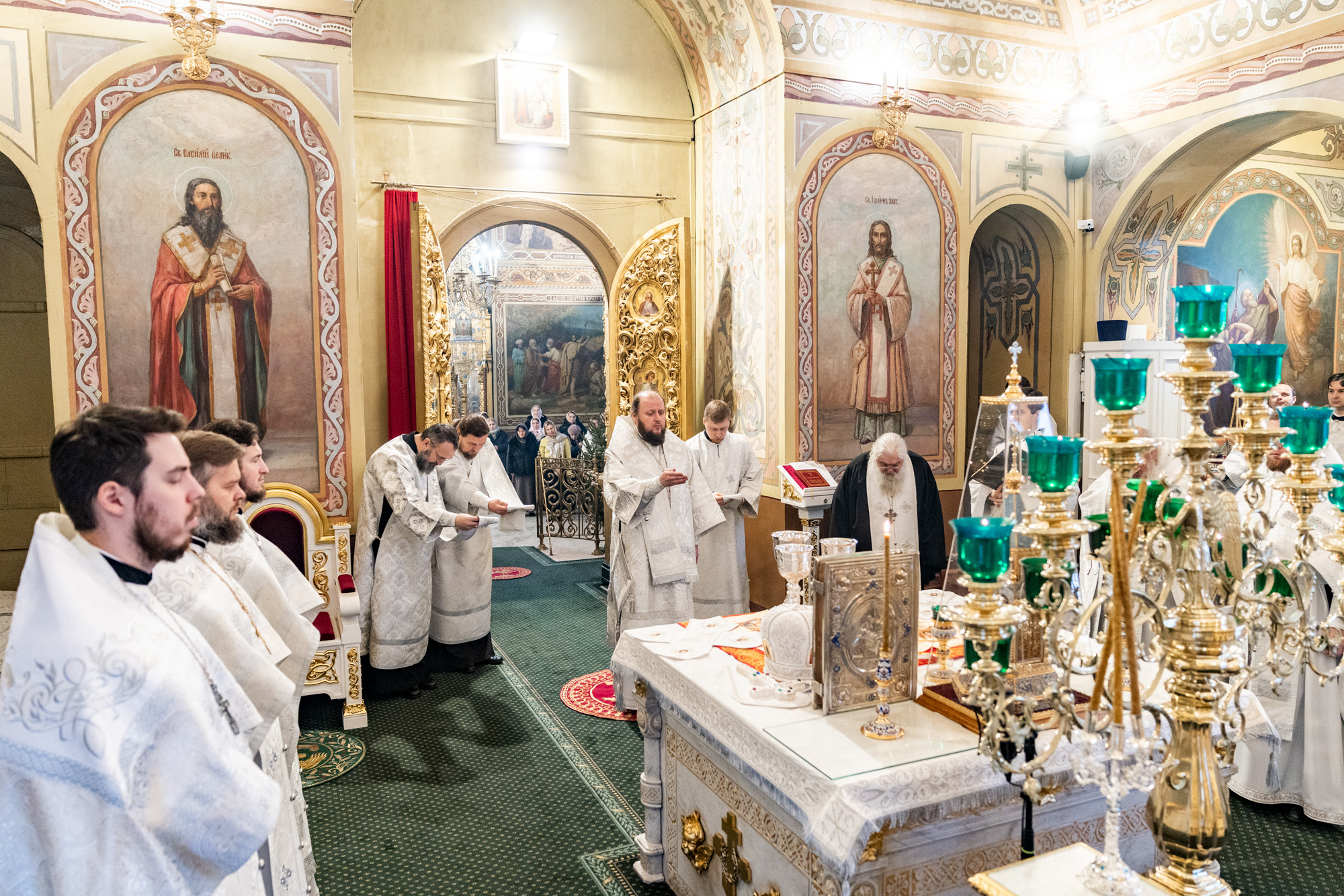 Богослужебные песнопения исполнил архиерейский хор под управлением Романа Гороха.