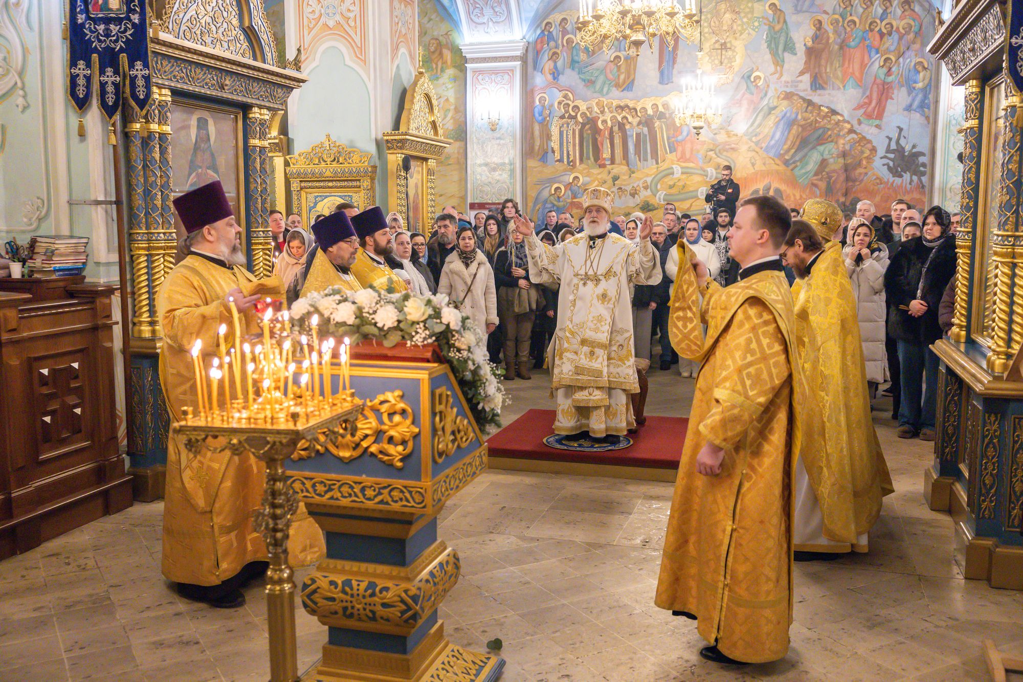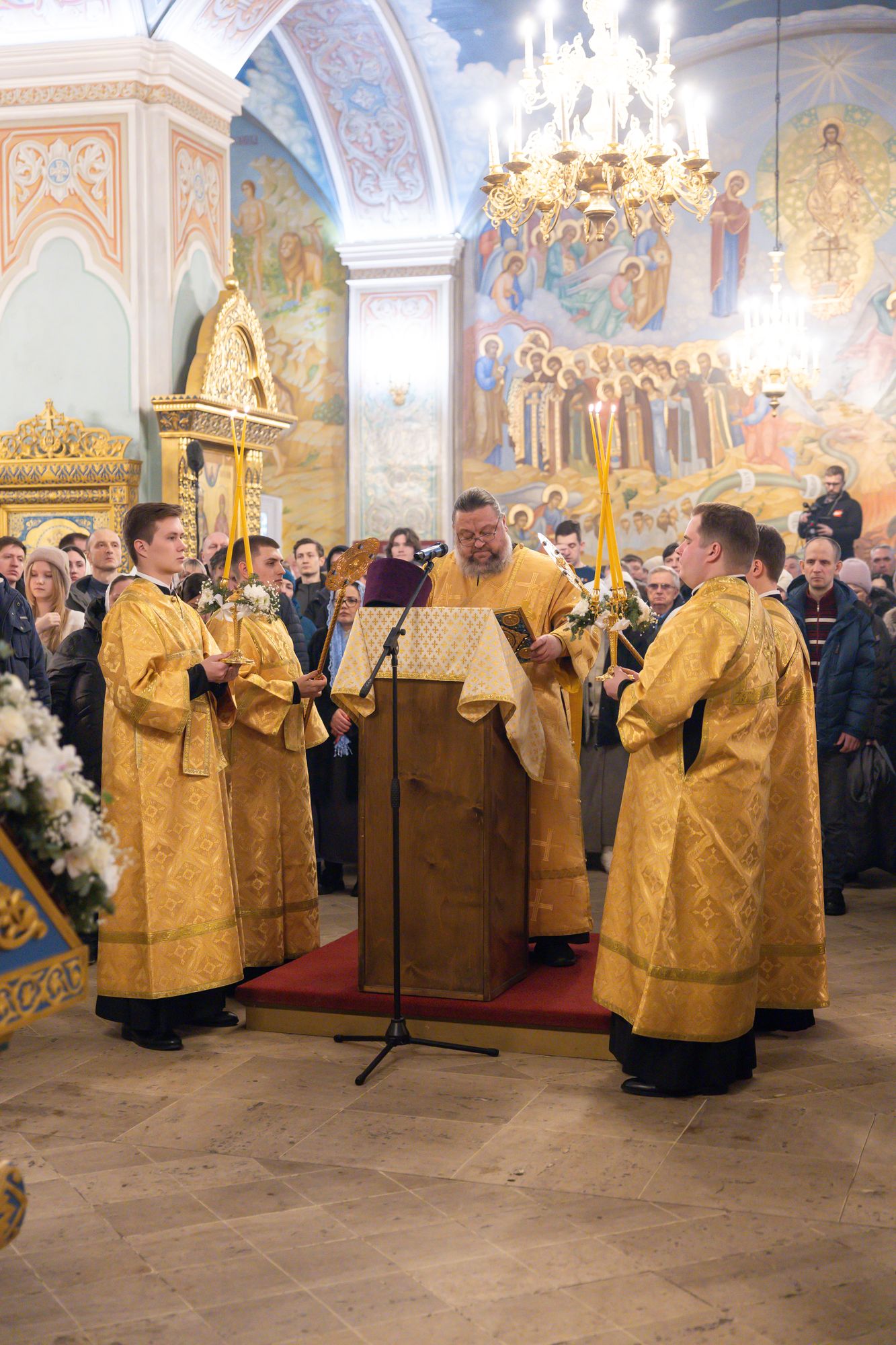 Богослужебные песнопения исполнил соборный хор под управлением Натальи Камышниковой.