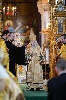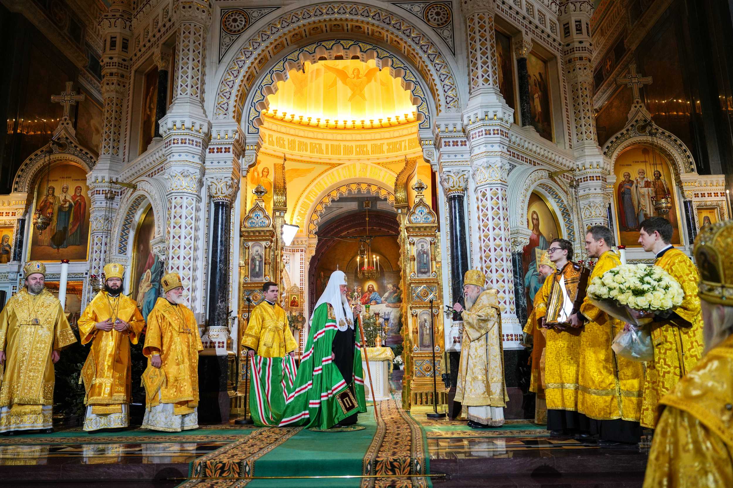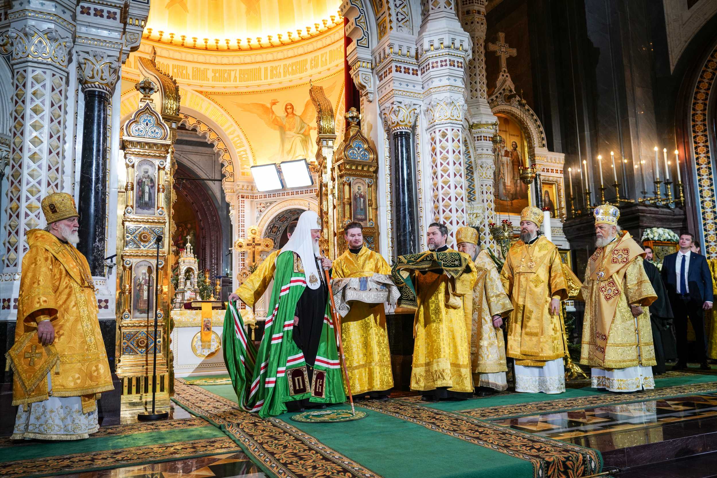 Его Святейшеству сослужили: митрополит Ювеналий (Поярков); митрополит Крутицкий и Коломенский Павел, Патриарший наместник Московской митрополии; митрополит Воскресенский Григорий, управляющий делами Московской Патриархии, первый викарий Патриарха Московского и всея Руси по г. Москве, наместник Новоспасского ставропигиального монастыря; митрополит Волоколамский Антоний, председатель Отдела внешних церковных связей; митрополит Каширский Феогност, председатель Синодального отдела по монастырям и монашеству, наместник Донского ставропигиального монастыря; митрополит Звенигородский Арсений; архиепископ Одинцовский и Красногорский Фома, руководитель Административного секретариата Московской Патриархии; архиепископ Подольский и Люберецкий Аксий; архиепископ Зеленоградский Савва, председатель Синодального миссионерского отдела, заместитель управляющего делами Московской Патриархии; епископ Гурий (Шалимов); епископ Серпуховской Роман, наместник Высоцкого ставропигиального монастыря; епископ Иероним (Чернышов); епископ Балашихинский и Орехово-Зуевский Николай, руководитель и главный редактор Издательства Московской Патриархии; епископ Павлово-Посадский Силуан, заместитель управляющего делами Московской Патриархии; епископ Истринский Серафим, председатель Синодального отдела по делам молодежи; епископ Сергиево-Посадский и Дмитровский Кирилл, наместник Свято-Троицкой Сергиевой лавры, ректор Московской духовной академии; епископ Раменский Алексий, личный секретарь Святейшего Патриарха Кирилла; епископ Егорьевский Мефодий, и.о. председателя Синодальной библейско-богословской комиссии, ректор Православного Свято-Тихоновского гуманитарного университета, наместник Николо-Угрешского ставропигиального монастыря; епископ Бронницкий Иоанн, наместник Высоко-Петровского ставропигиального монастыря; протопресвитер Владимир Диваков, секретарь Патриарха Московского и всея Руси по г. Москве; протоиерей Михаил Рязанцев, ключарь Храма Христа Спасителя; протоиерей Николай Балашов, советник Патриарха Московского и всея Руси; протоиерей Максим Козлов, председатель Учебного комитета Русской Православной Церкви; архимандрит Филарет (Булеков), заместитель председателя ОВЦС МП; протоиерей Игорь Якимчук, заместитель председателя ОВЦС МП; архимандрит Стефан (Тараканов), заместитель председателя Синодального отдела по монастырям и монашеству, наместник Саввино-Сторожевского ставропигиального монастыря; протоиерей Дионисий Казанцев, секретарь Патриарха Московского и всея Руси по Московской области; иерей Кирилл Марковский, председатель Синодального отдела по тюремному служению; иерей Василий Лосев, руководитель секретариата ВРНС, руководитель юридической службы Московской митрополии; благочинные г. Москвы и столичное духовенство.