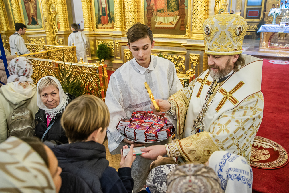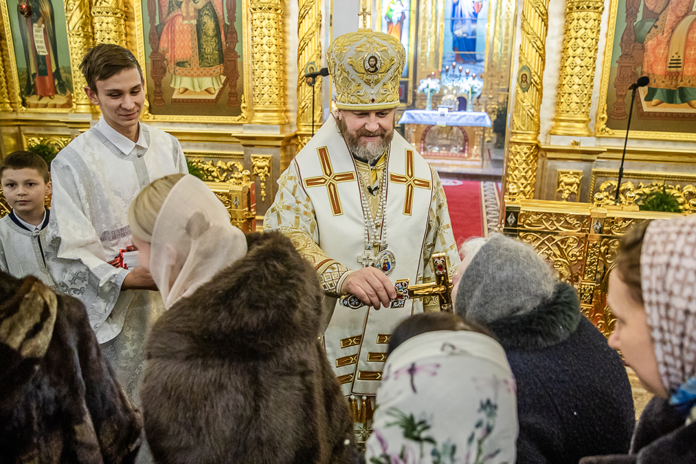 В конце богослужения архиепископ Фома поздравил всех молящихся с Рождеством Христовым, прочитал послание Патриарха Московского и всея Руси Кирилла и обратился со словами проповеди.