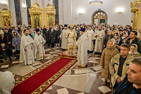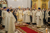 Владыке сослужили клирики собора.