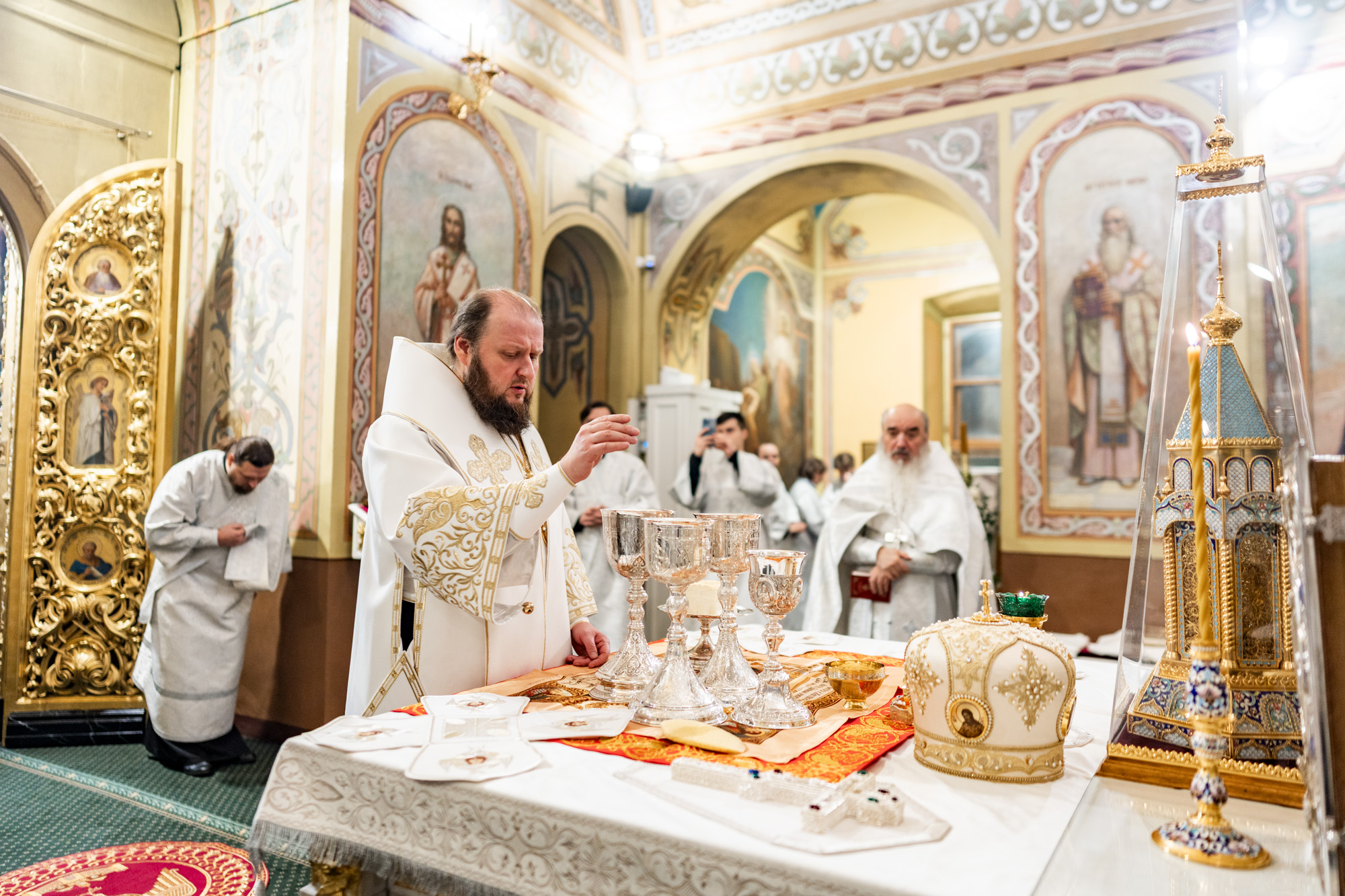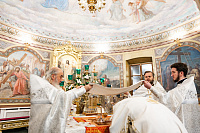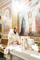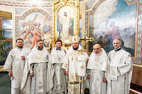 Его Высокопреосвященству сослужили клирики собора.