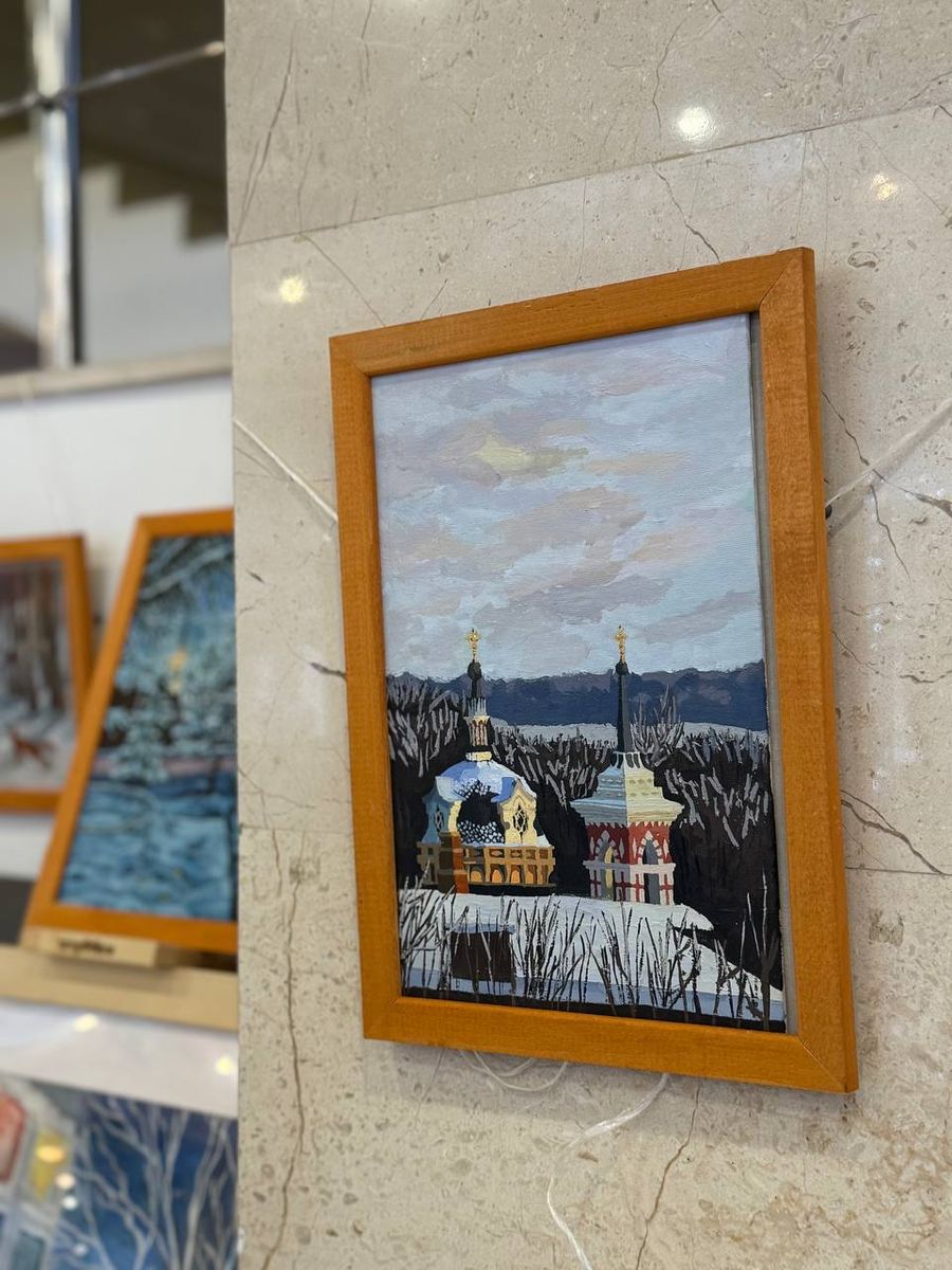 В фойе Дома Культуры была организована выставка работ художественного кружка, который проходит при Смоленском храме.