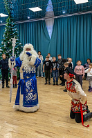 Перед спектаклем в фойе дома культуры с детьми играли аниматоры, а выходя из зала, каждый ребёнок получил сладкий подарок.