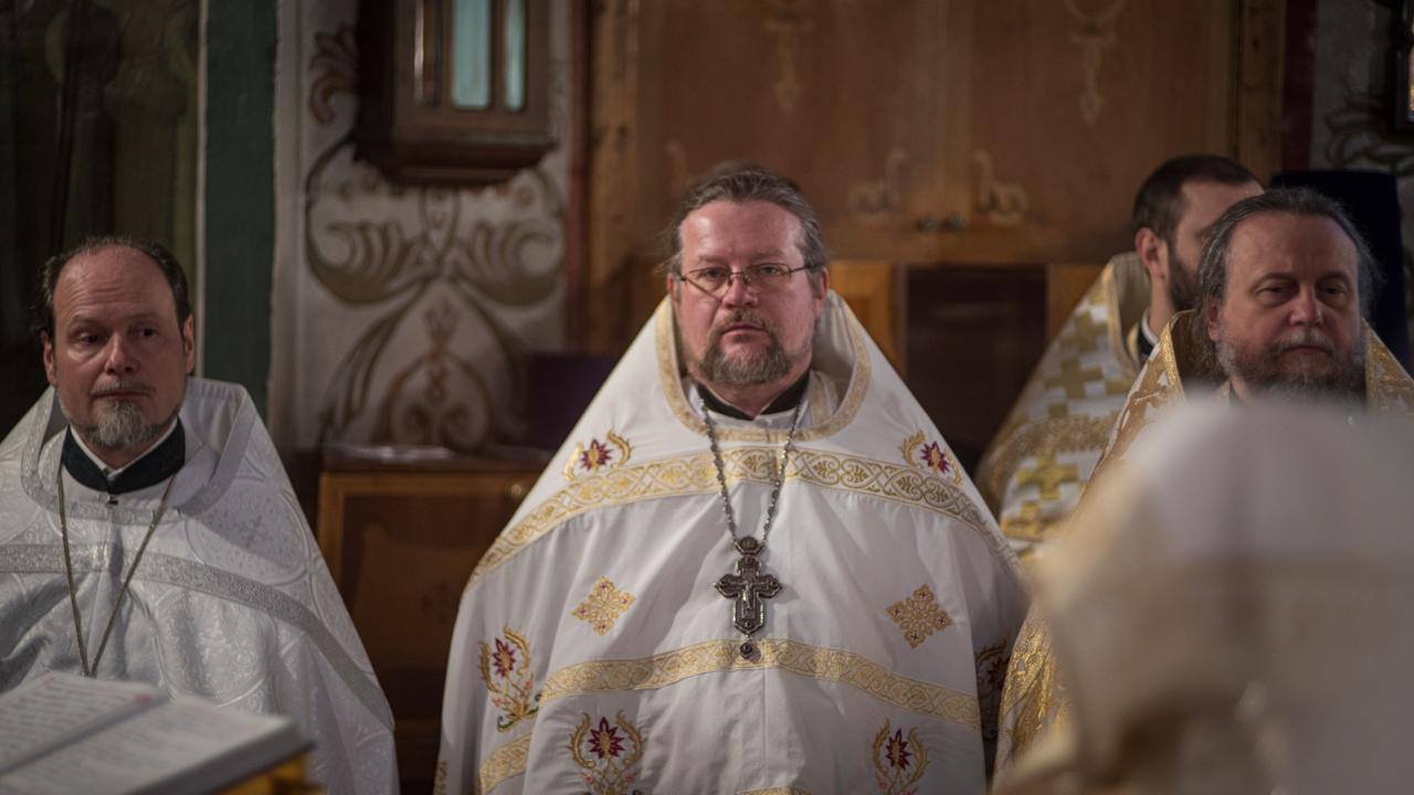 Его Высокопреподобию сослужили: благочинные церковных округов: Сергиево-Посадского – игумен Иоанн (Самойлов), Долгопрудненского – протоиерей Андрей Хмызов, монастырей Сергиево-Посадской епархии – игумен Алексий (Горлычев), Мытищинского – протоиерей Димитрий Оловянников, Всехсвятского – протоиерей Василий Кислянка, Дмитровского – протоиерей Афанасий Чорногуз, Солнечногорского – протоиерей Антоний Тирков, Клинского – протоиерей Евгений Мальков, Дубненско-Талдомского – протоиерей Павел Мурзич, Яхромского – иерей Сергий Бернацкий, Рогачёвского – иерей Сергий Сафронов, Королёвского – иерей Димитрий Поповский, Химкинского – иерей Димитрий Оселедец, Пушкинского – иерей Василий Ковальчук; настоятель Борисоглебского мужского монастыря г. Дмитрова игумен Августин (Шорников); начальник службы протокола Сергиево-Посадской епархии иеромонах Иов (Урум); духовенство Сергиево-Посадской епархии.