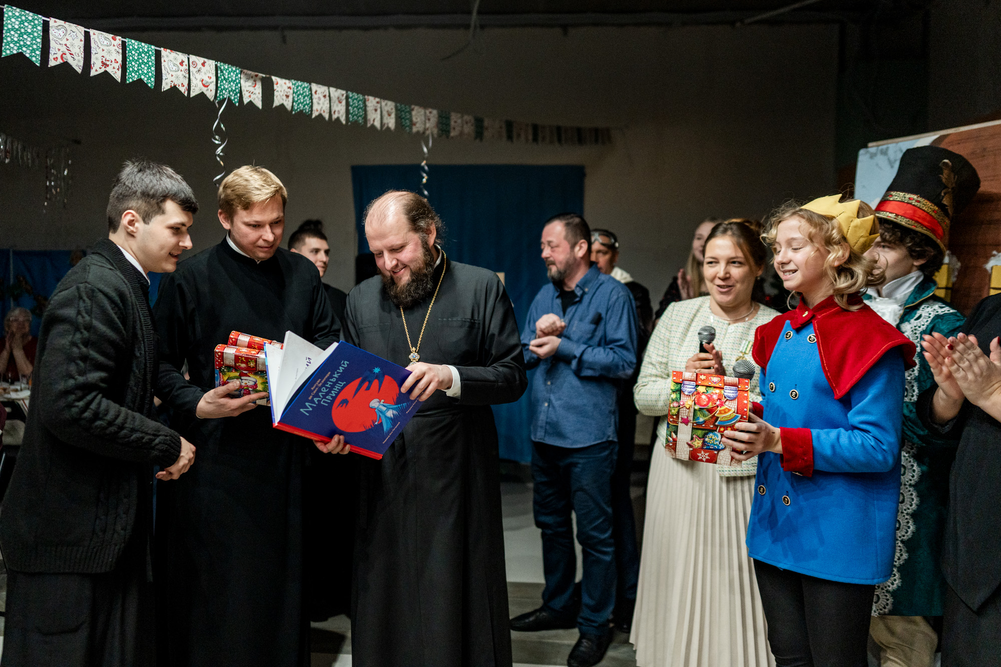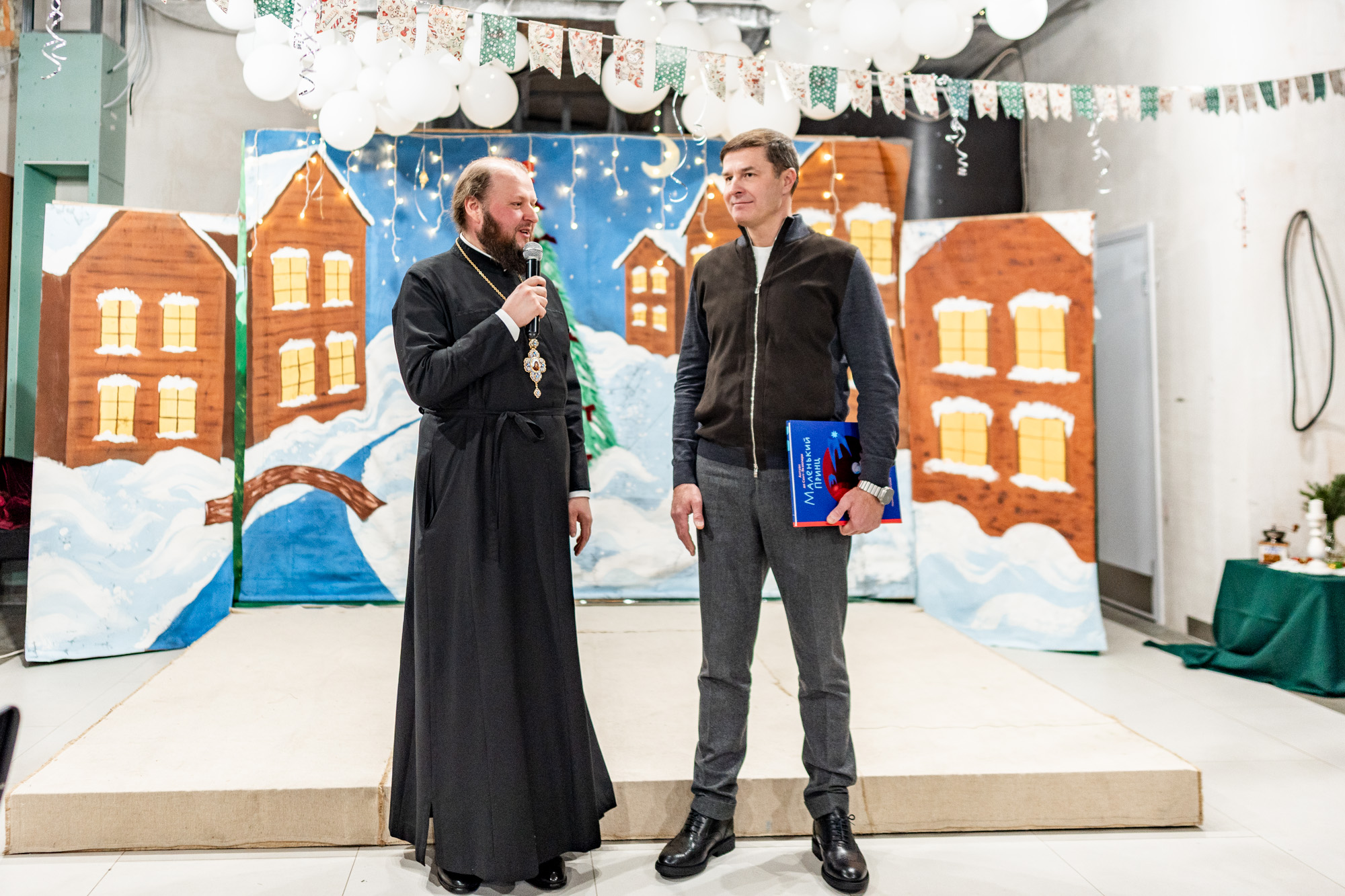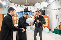 После богослужения в строящемся духовно-просветительском центре «Фавор и Ермон» был показан спектакль «Маленький принц», поставленный воспитанниками воскресной школы прихода по произведению Антуана де Сент-Экзюпери. Гостем представления также стал глава г.о. Люберцы В.М.Волков.