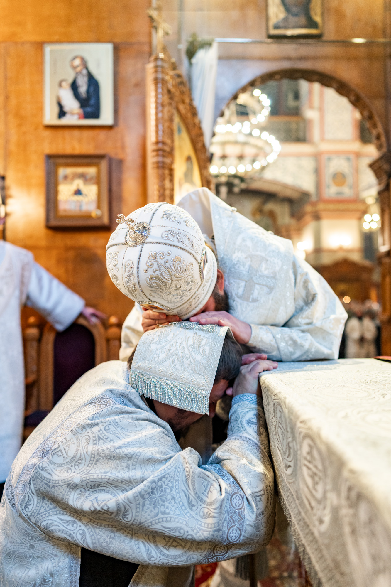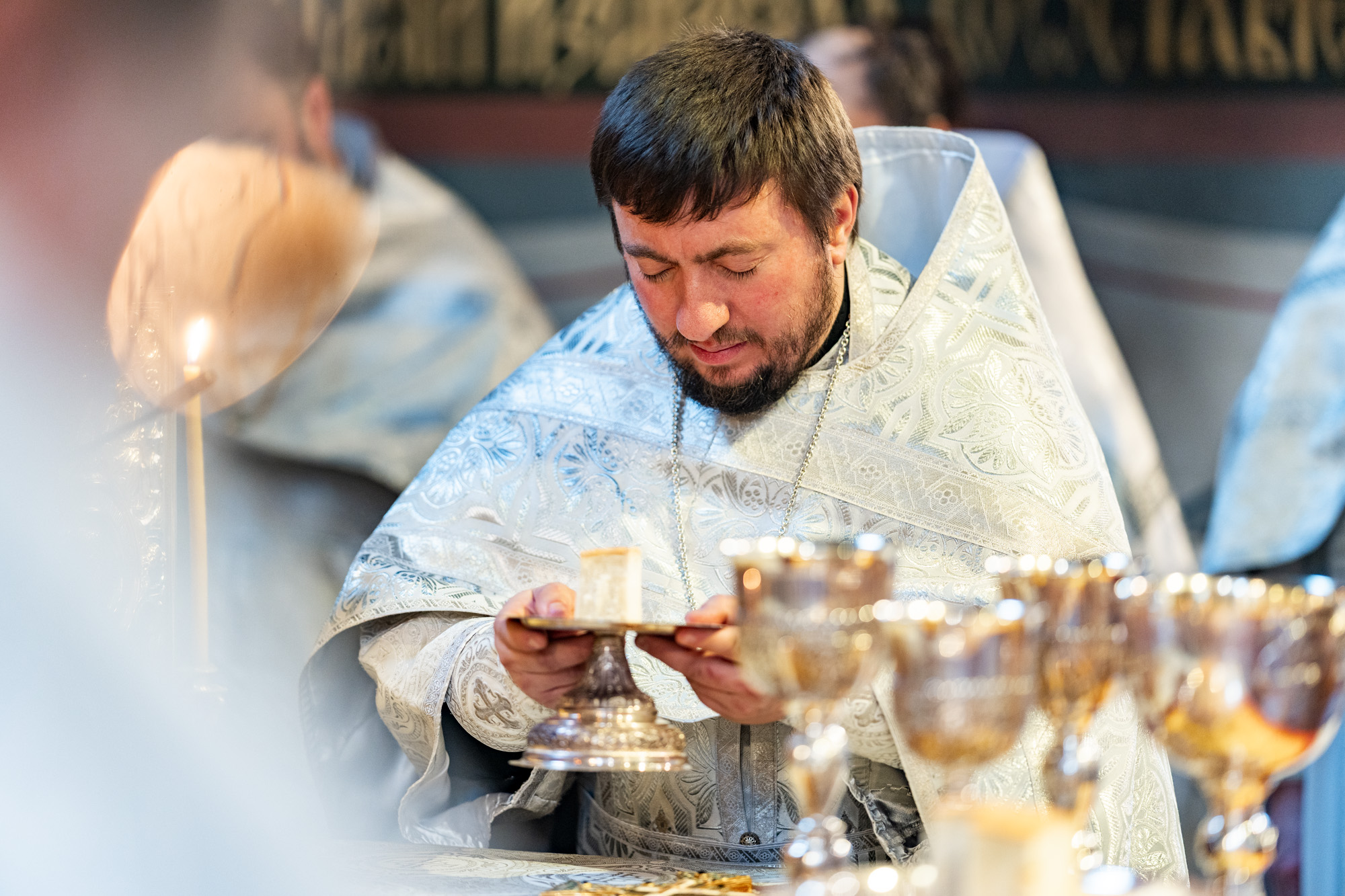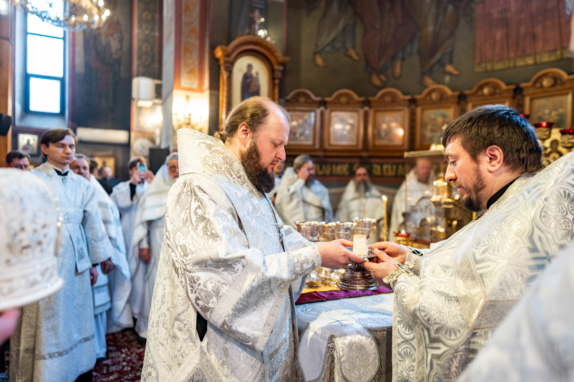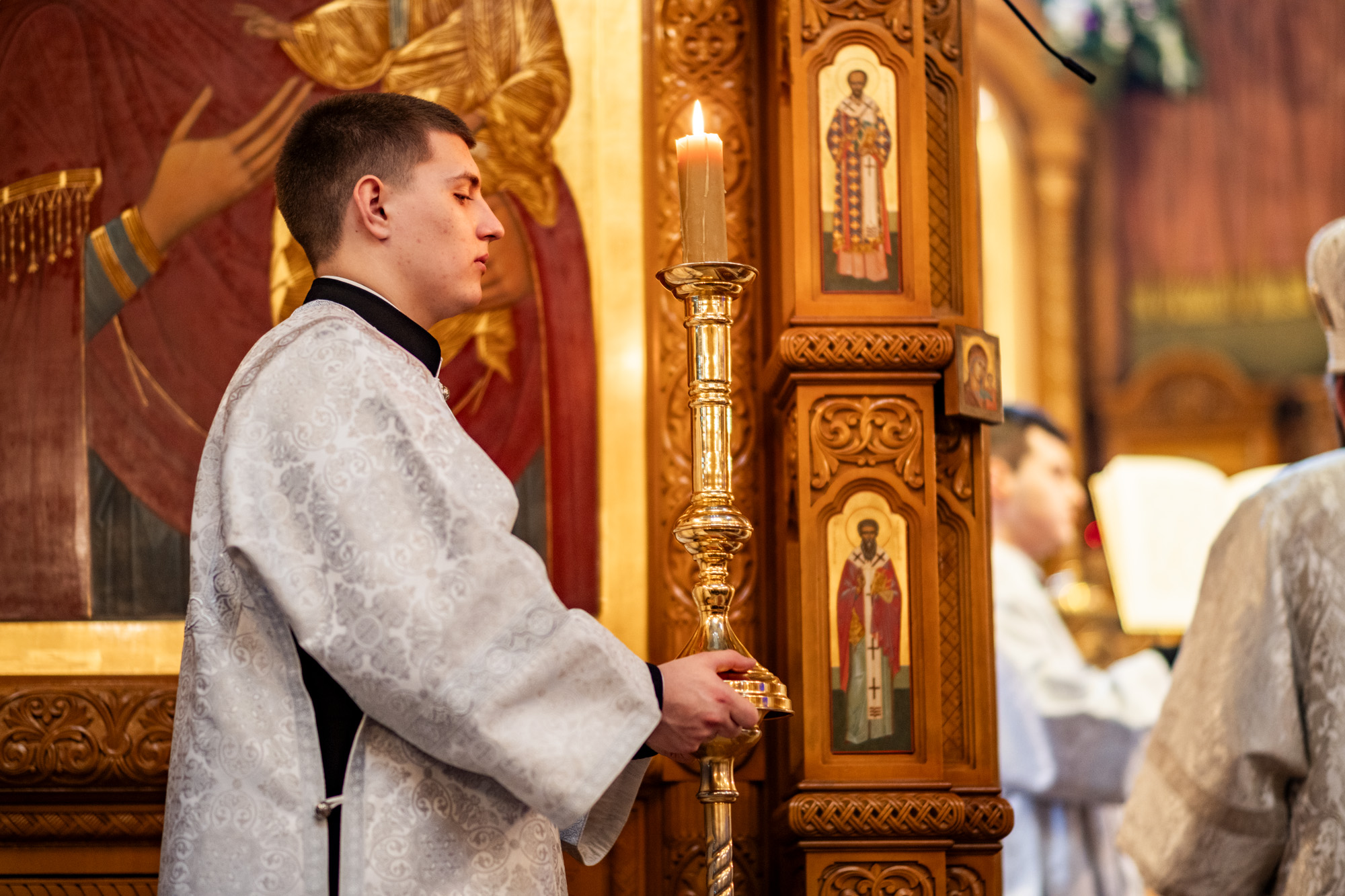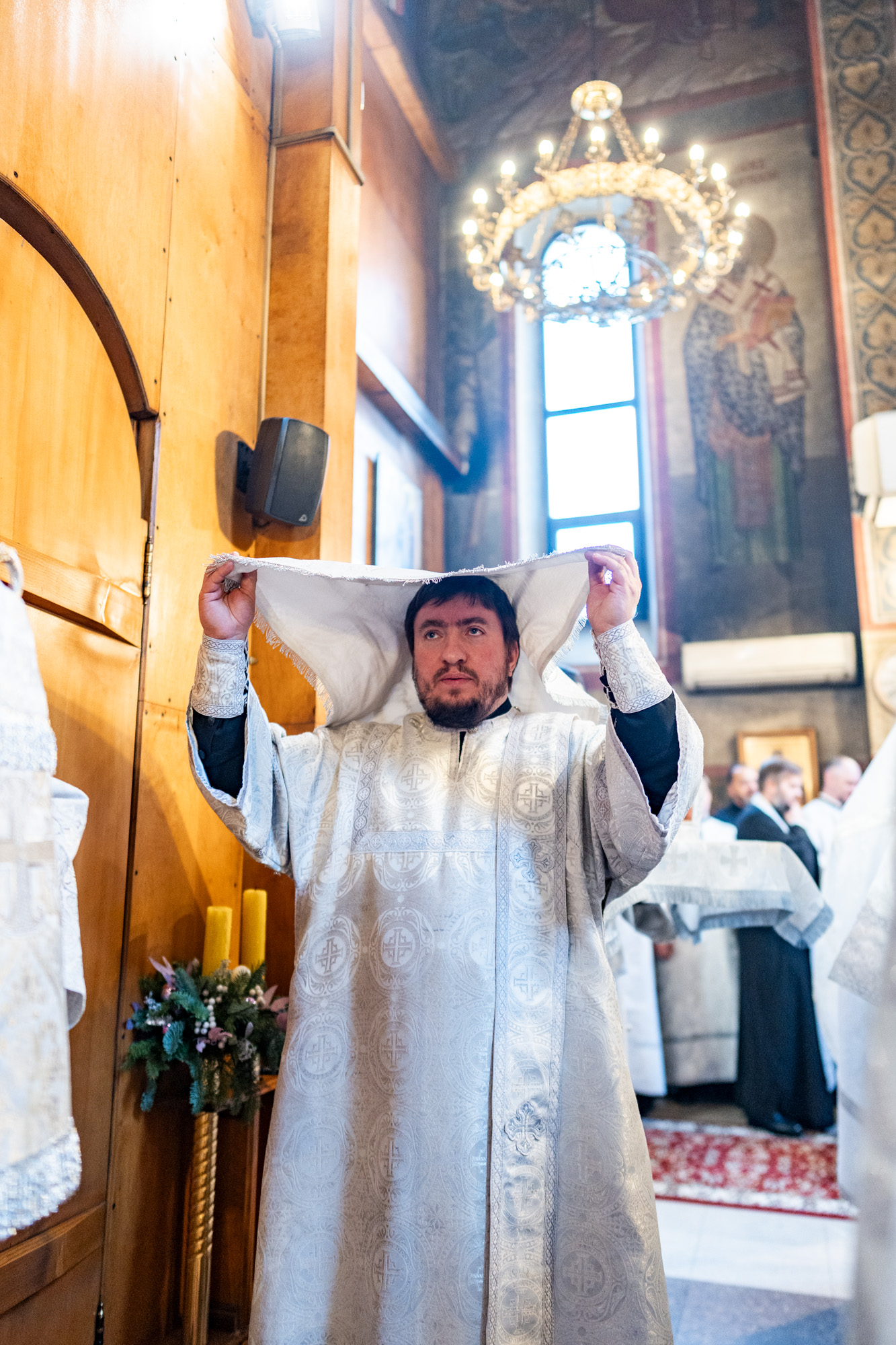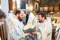 После Херувимской песни архиепископ Аксий совершил иерейскую хиротонию диакона Иоанна Мищука.