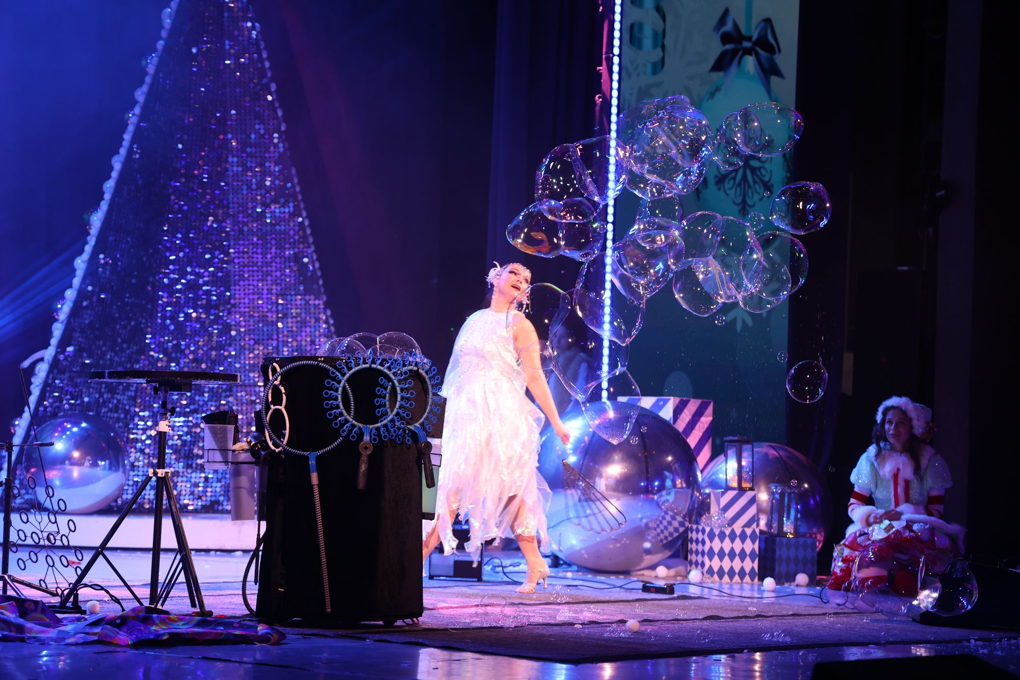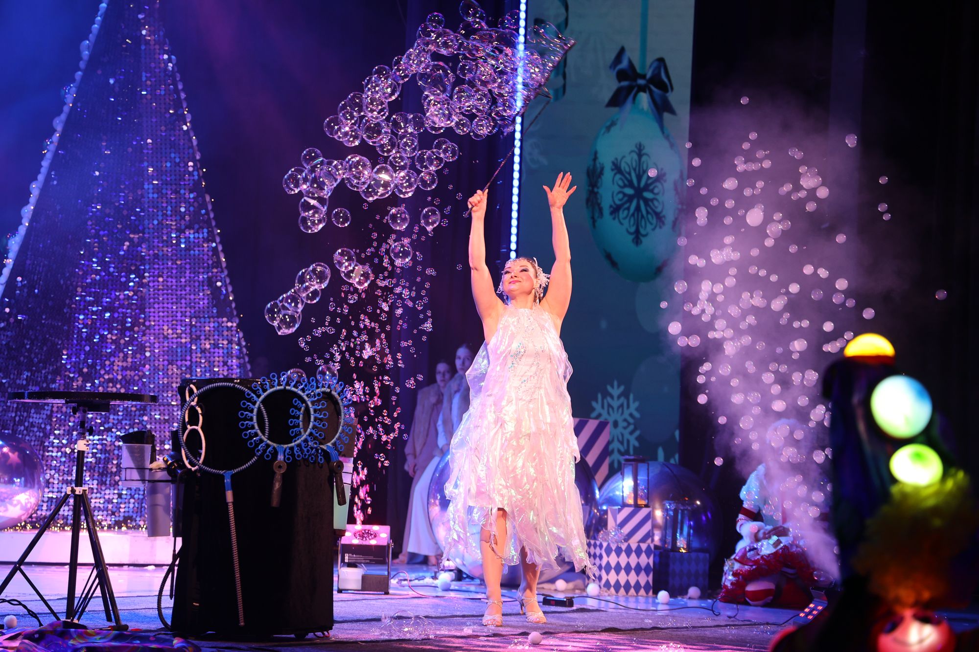 Яркое выступление артистов, песни и танцы вызвали бурные эмоции участников праздника. С большим интересом юные зрители смотрели шоу мыльных пузырей Алены Москаленко, «Тесла-шоу» артиста Сергея Рябых и «Песочное шоу» Алены Раковской. С задором дети исполняли популярные песни вместе с артистом Михаилом Николенко, а также приняли участие в шоу снеговиков и ростовых кукол, затеявших со зрителями игру в снежки.