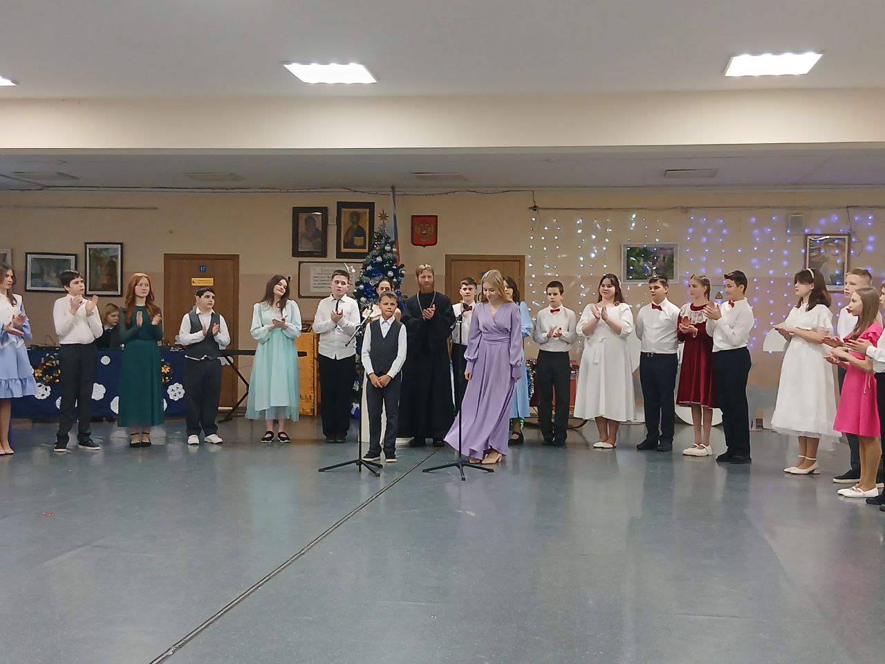 Ученики с радостью исполнили рождественские песни, прочитали стихи о светлом празднике, сыграли на музыкальных инструментах, разучили и исполнили красивые бальные танцы — полонез, падеграс и кадриль. Дети также приняли участие в традиционных народных играх.
