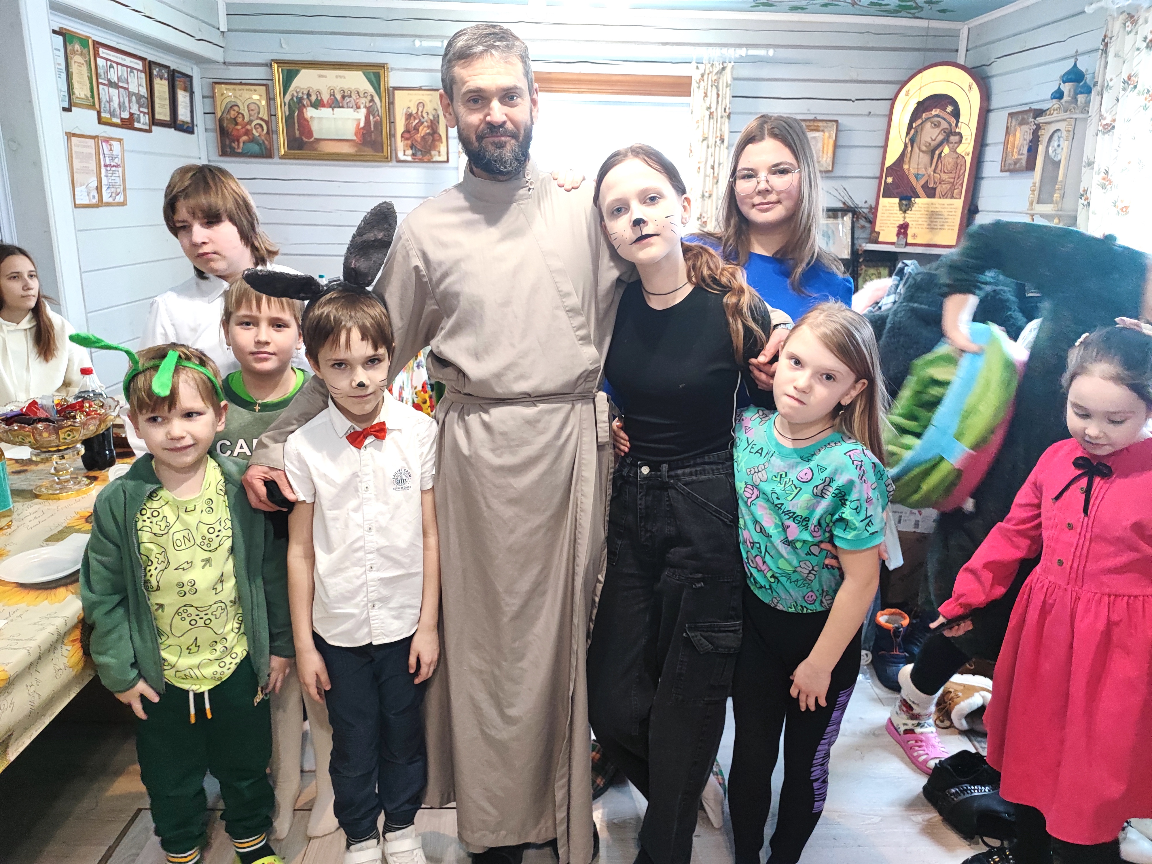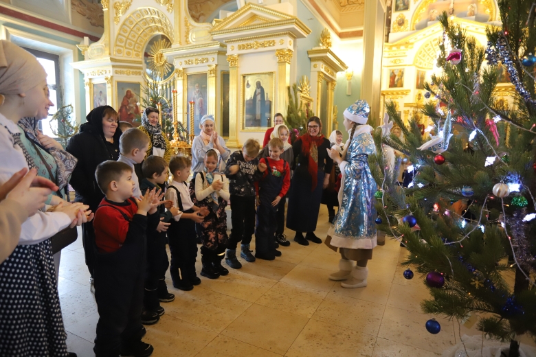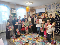Регент приходского хора Л. А. Горбачева в форме викторины рассказала детям о Рождестве Христовом. Настоятель иерей Александр Кузнецов выступил с поздравительным словом и вручил ребятам подарки от прихода.