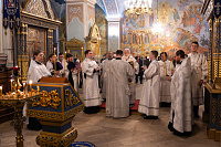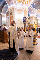 Богослужебные песнопения исполнил соборный хор под управлением Наталии Камышниковой.