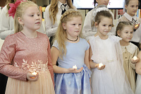 Ярким украшением концерта стало выступление младших классов и вокального ансамбля «Территория детства» с колядкой «На сердце радость».