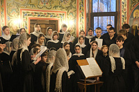 Богослужебные песнопения исполняли три хора: хор Звенигородского благочиния и младшая, средняя и старшая группы детско-юношеского хора «Лик» Звенигородского благочиния.