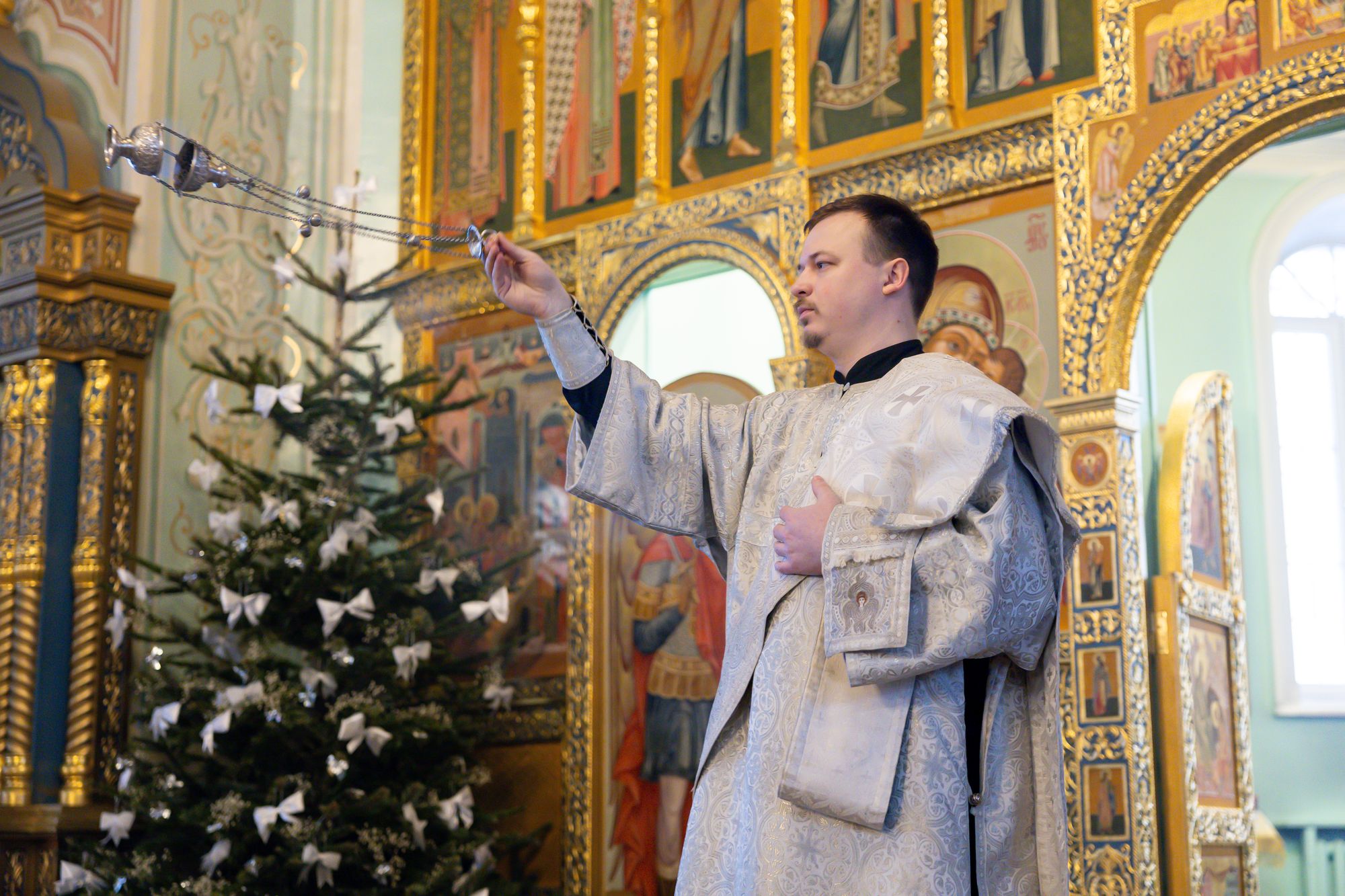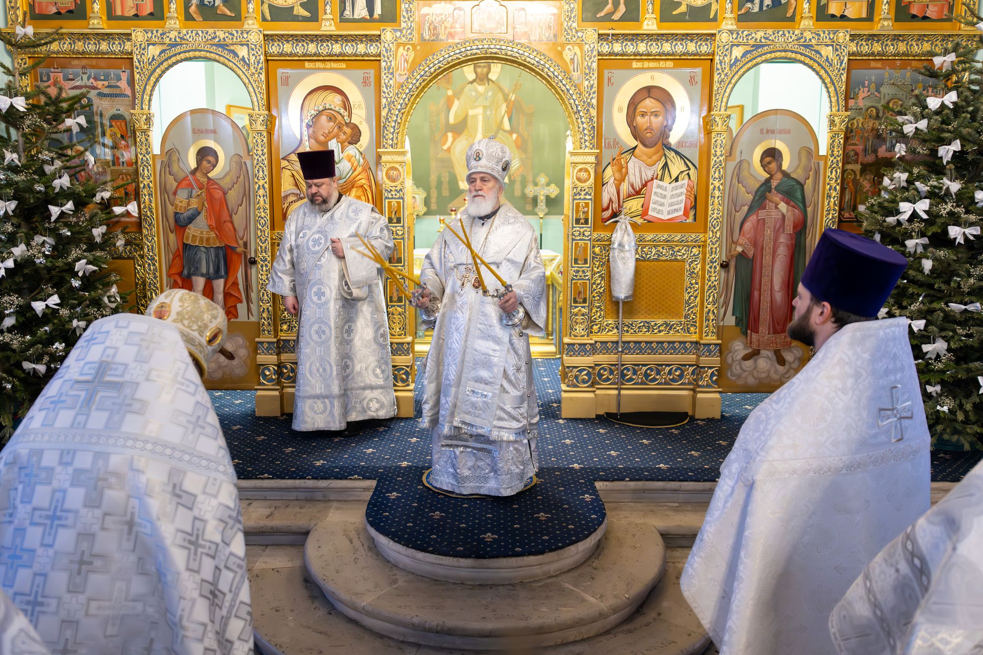 Богослужебные песнопения исполнил соборный хор под управлением Натальи Камышниковой.