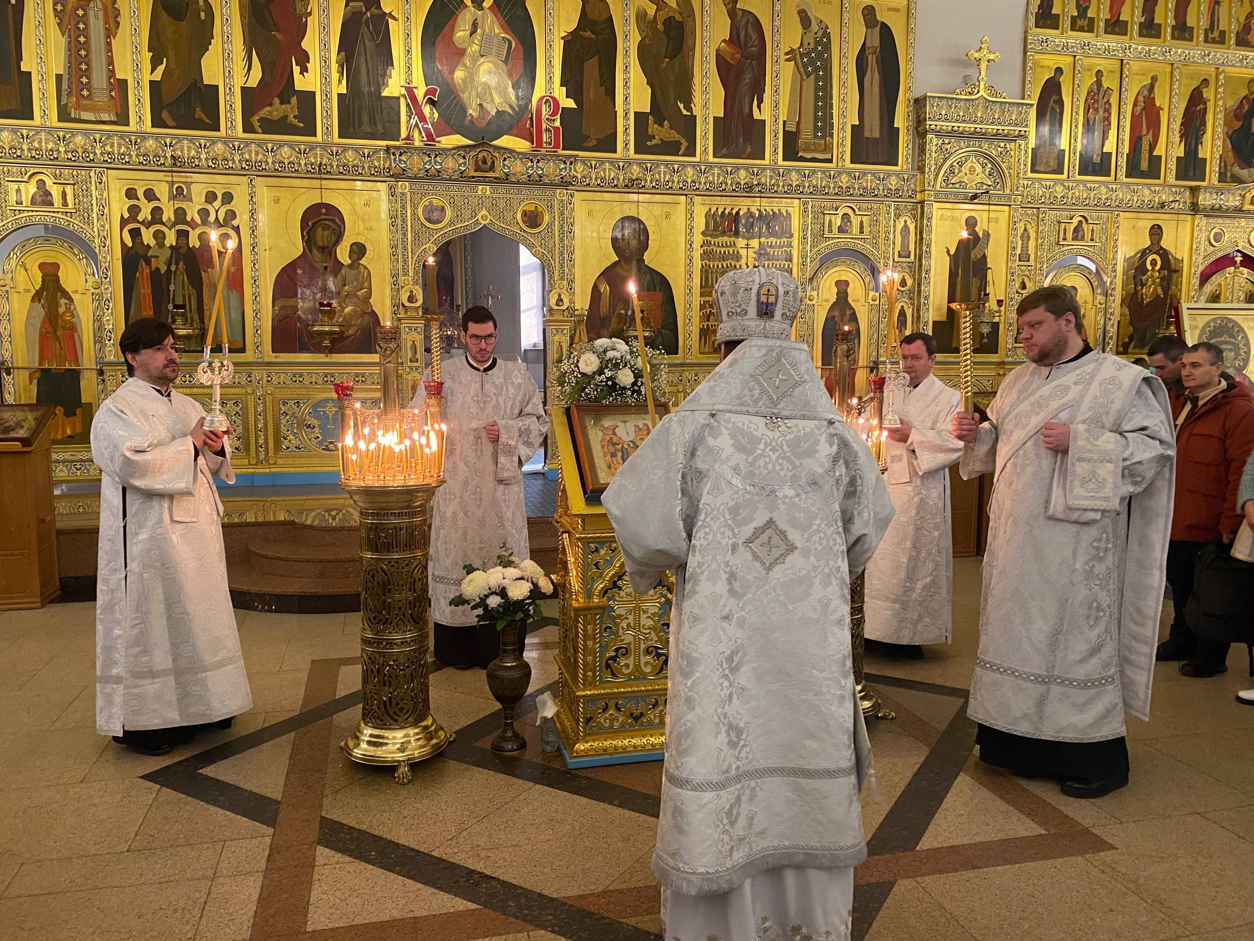 Его Высокопреосвященству сослужили клирики собора.