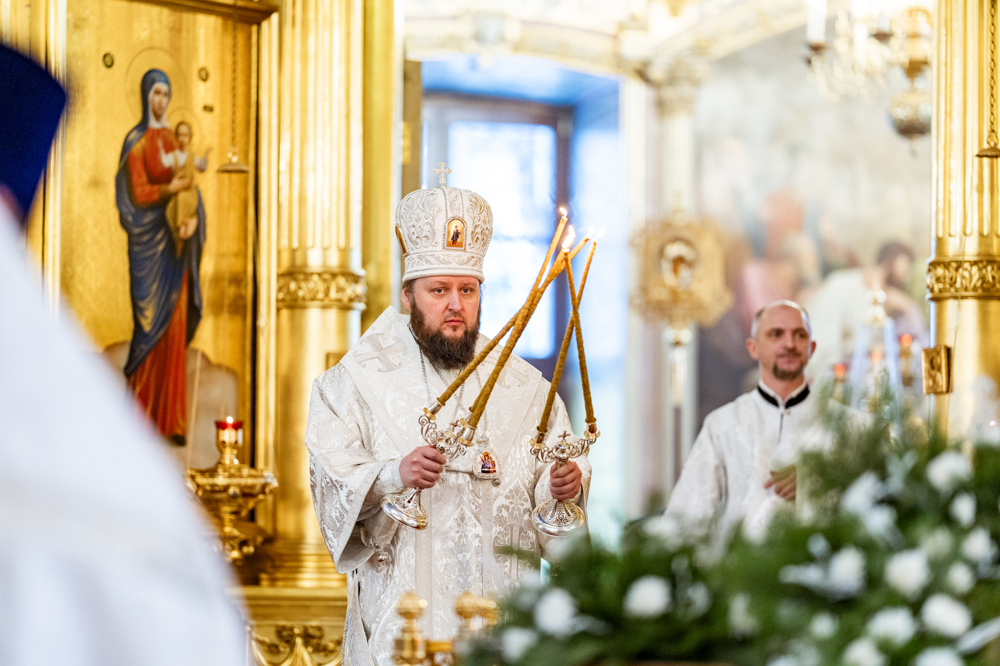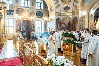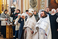 Его Высокопреосвященству сослужили секретарь Подольского епархиального управления иерей Константин Семёнов, настоятель собора архимандрит Кирилл (Костиков) и духовенство Подольской епархии.
