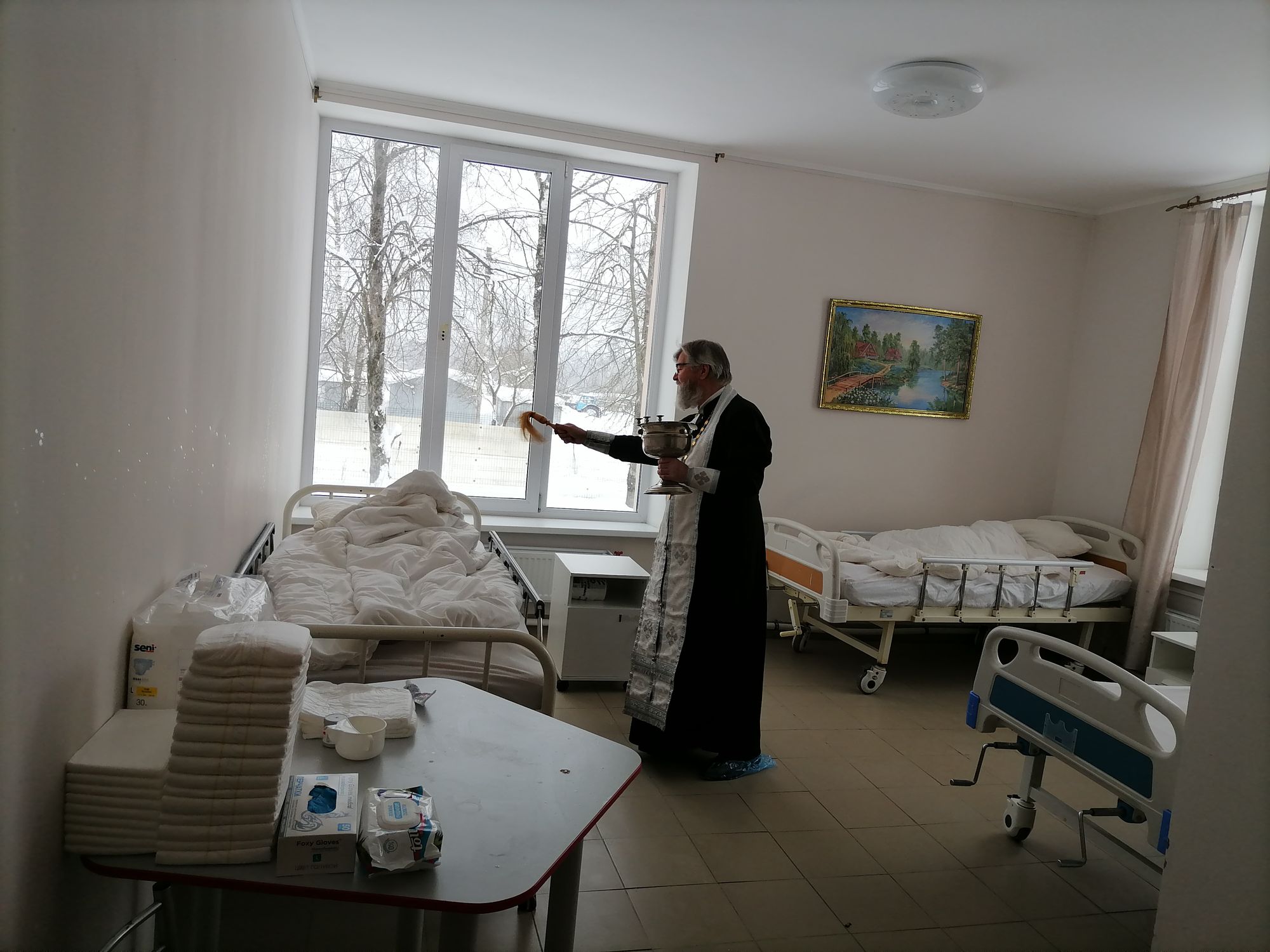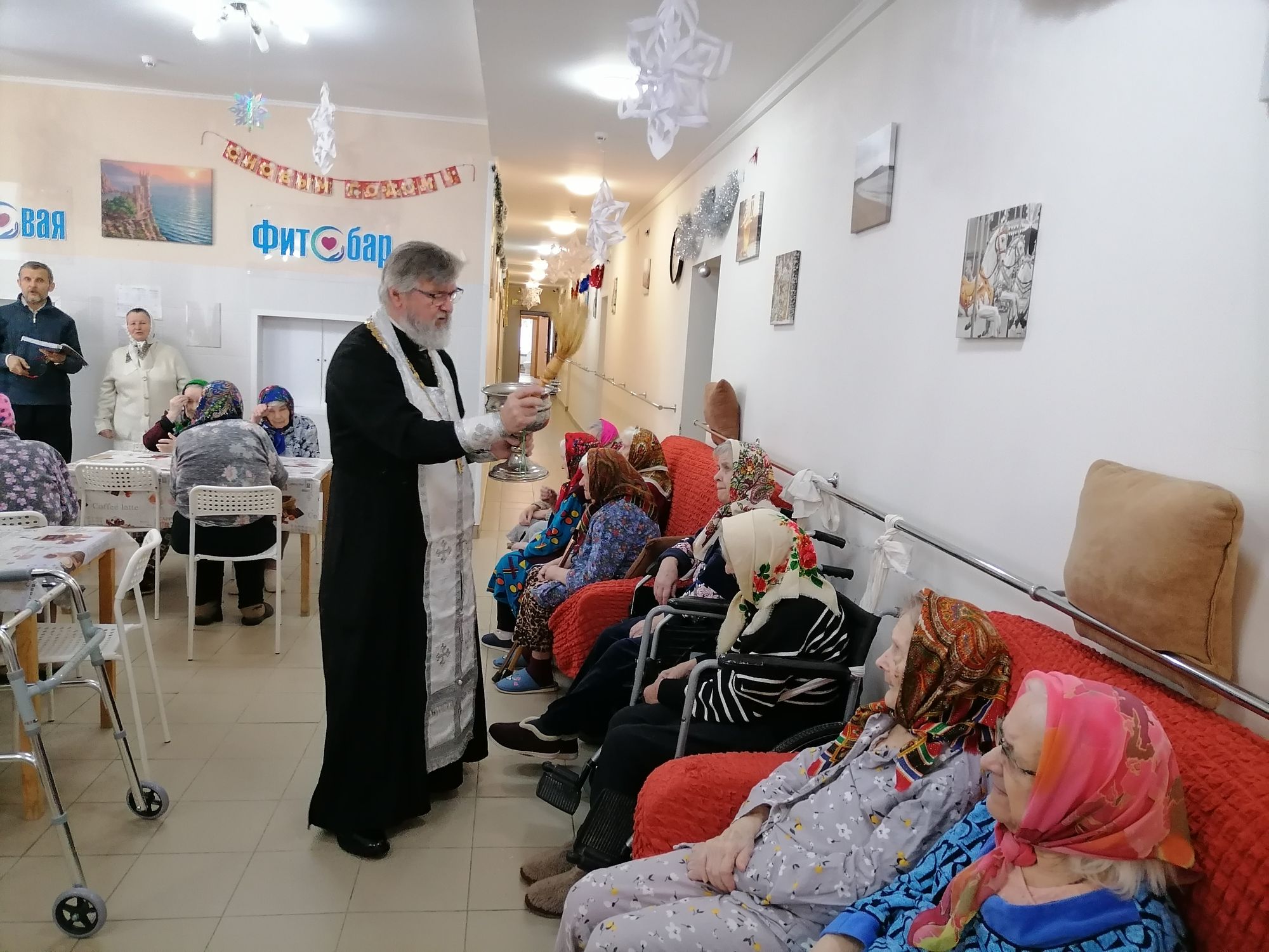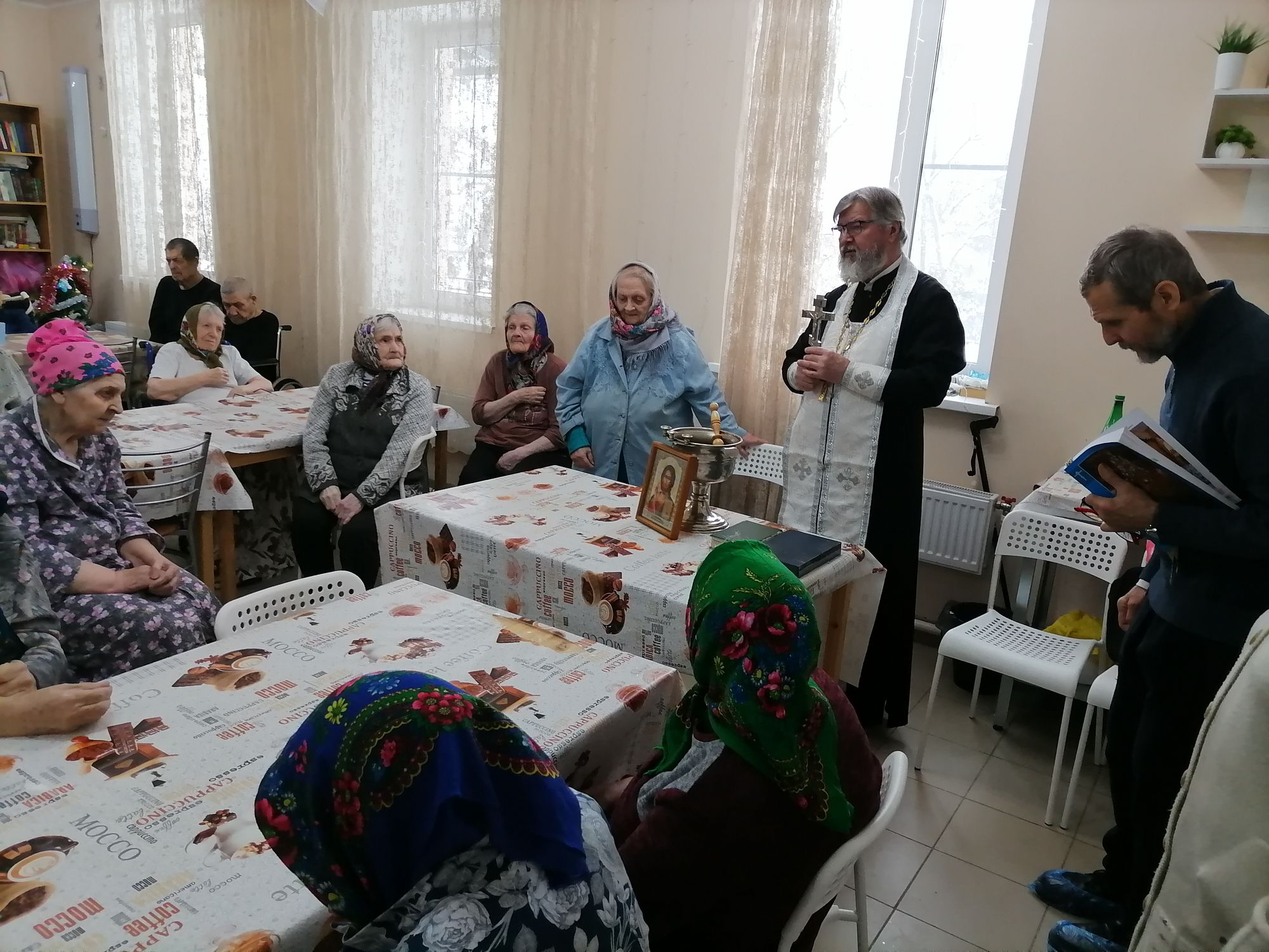 19 января, в праздник Святого Богоявления, настоятель Вознесенского храма с. Барановское иерей Георгий Лобков посетил пансионат для пожилых людей и инвалидов «Забота о близких» с. Усадище. Отец Георгий отслужил праздничный молебен, окропил палаты, постояльцев и работников пансионата крещенской водой и поздравил всех с праздником Крещения Господня.