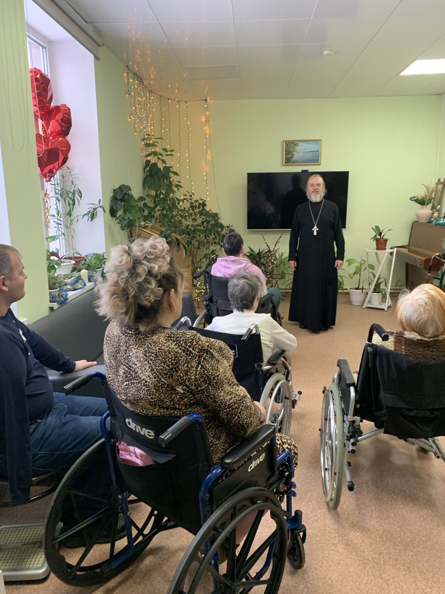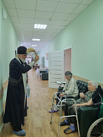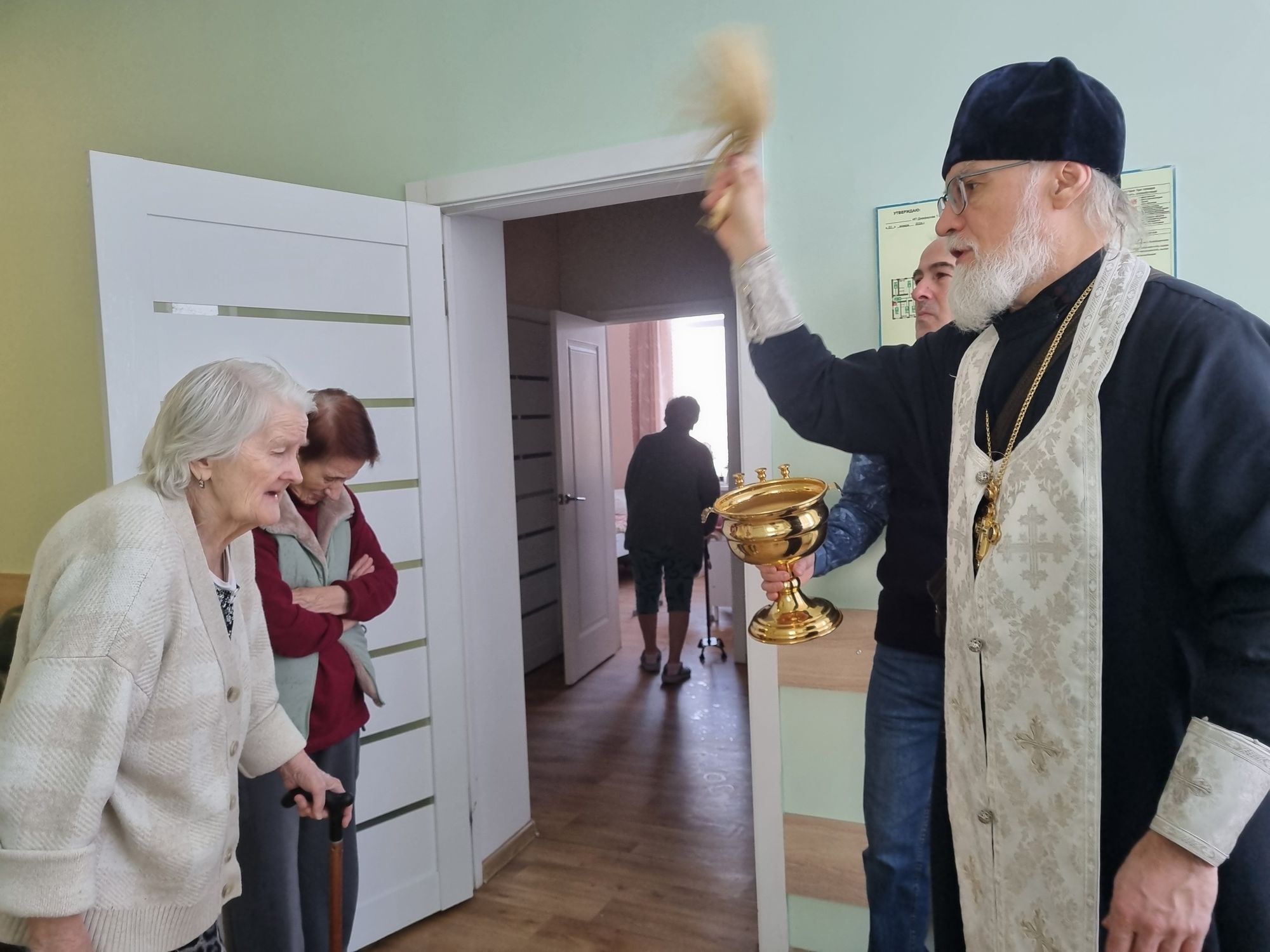 18 января настоятель Никольского храма д. Клишева протоиерей Николай Крячко в сопровождении приходских волонтёров посетил пансионат для пожилых людей и инвалидов в д. Клишева, чтобы поздравить сотрудников и всех проживающих с наступающим праздником Крещения Господня и окропить святой водой палаты и помещения пансионата.