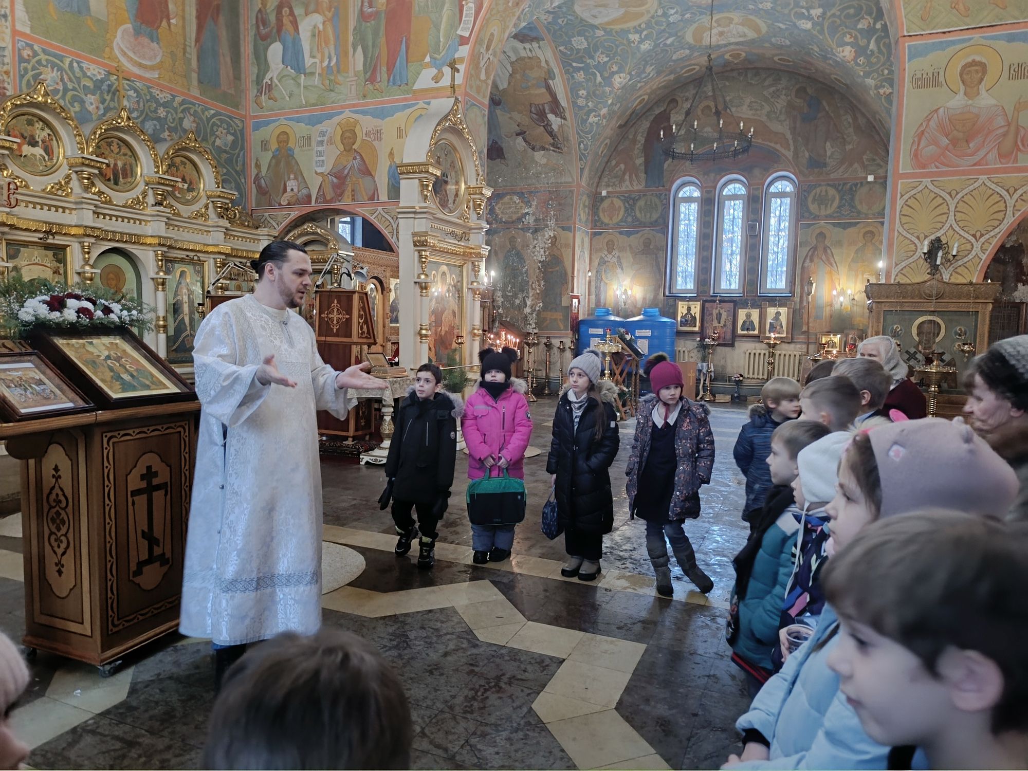 20 января ученики 1 «М» класса третьей школы г. Жуковского посетили с экскурсией Космо-Дамианский храм. Алтарник и катехизатор храма Дмитрий Куделин рассказал школьникам о празднике Крещения Господня и крещенской воде, о послушании учителям и родителям, о важности добрых дел. Детям были розданы свечи, и Дмитрий показал, как правильно ставить свечи у праздничной иконы, как молиться. В завершение экскурсии все поднялись на колокольню и наблюдали, как совершается колокольный звон. Всем детям и сопровождающим взрослым были вручены праздничные буклеты о Рождестве Христовом и Богоявлении.