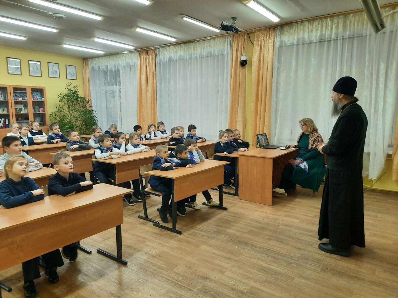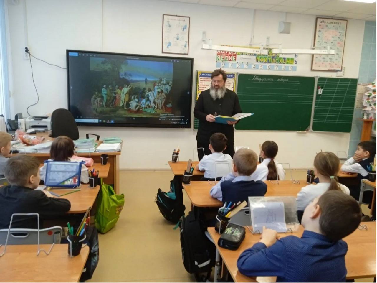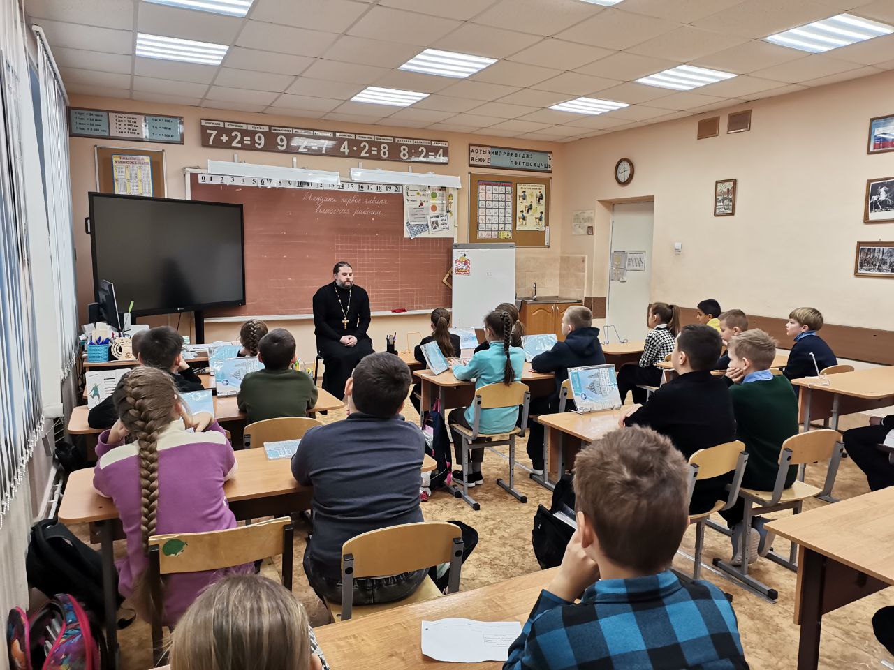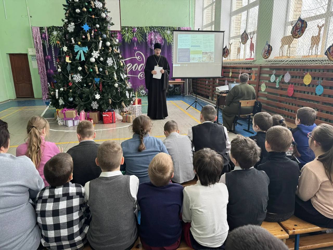 22 января 2026 года настоятель Троицкого храма села Пирочи свящ. Алексий Сафонов посетил начальные классы Сосново-Борской СОШ, поздравил ребят с праздниками Рождества Христова и Крещения Господня, рассказал им о праздниках.