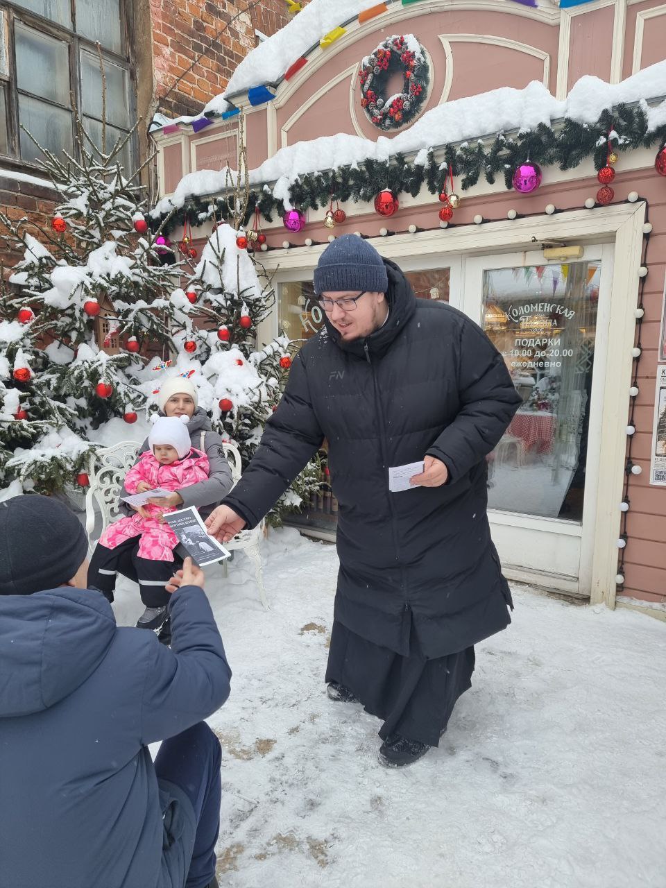 11 января 2026 года, в попразднство Рождества Христова, настоятель иерей Димитрий Степаненков и прихожане храма Рождества Христова города Коломны провели миссионерскую акцию с раздачей листовок и общением с людьми в музейной фабрике пастилы и в 924 учебном центре беспилотной авиации Министерства обороны.