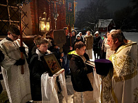 Настоятель храма поздравил всех присутствующих с праздником и рассказал об истории и значении Рождества Христова и Святого Богоявления.