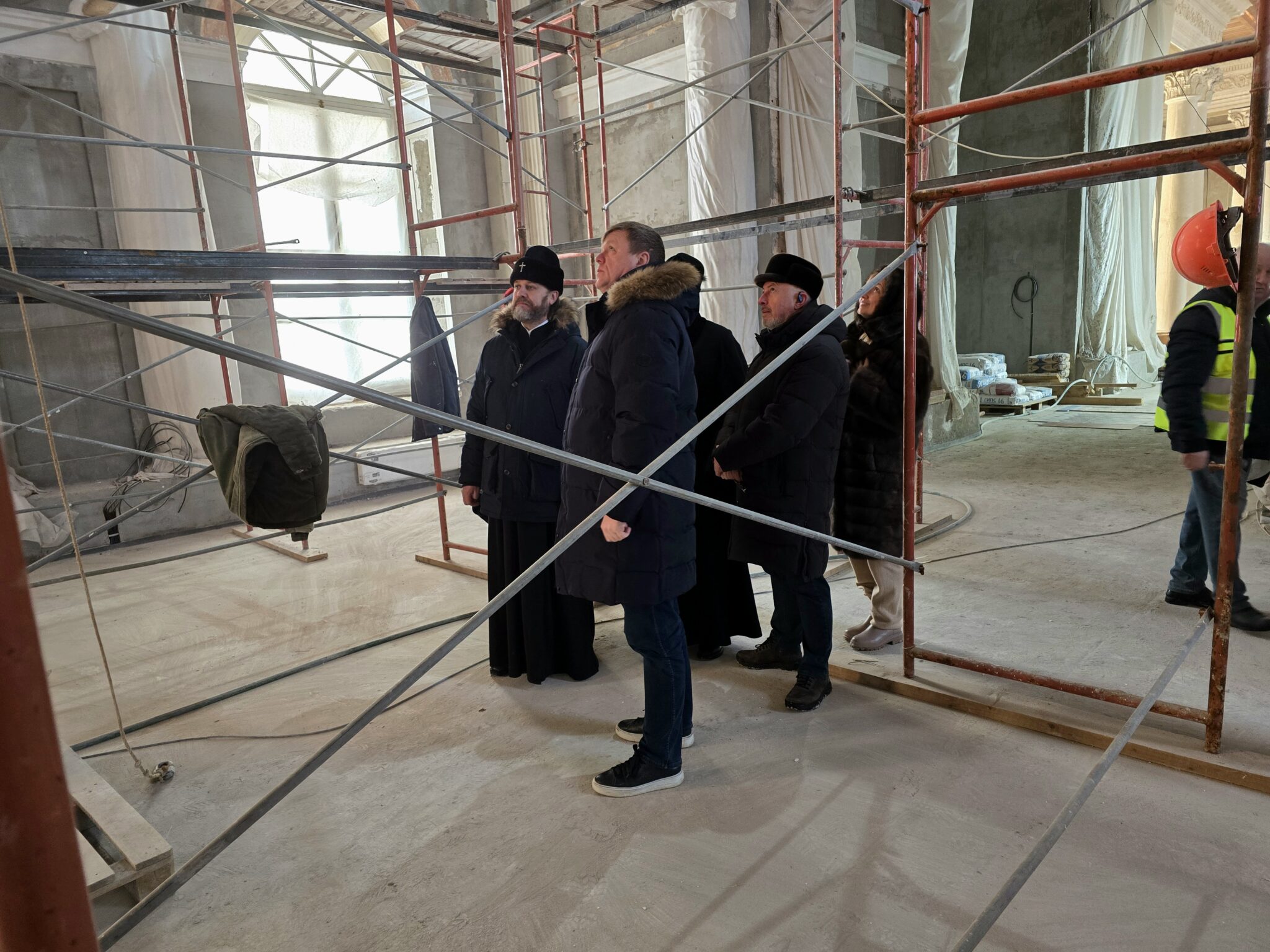 26 января 2025 г. в ходе посещения выдающегося памятника церковной архитектуры федерального значения – Казанского храма усадьбы Чернышёвых Владыка Фома ознакомился с ходом масштабных реставрационных работ.Архиепископа Фому сопровождали благочинный Волоколамского округа протоиерей Герман Григорьев, заместитель благочинного, настоятель ярополецких храмов священник Михаил Завитаев, генеральный директор компании ООО “С.К. – Реставратор” В.В. Сёмин, представитель благотворителя Казанского храма, архитектор проекта восстановления Н.Н.Смирнов, другие заинтересованные лица.